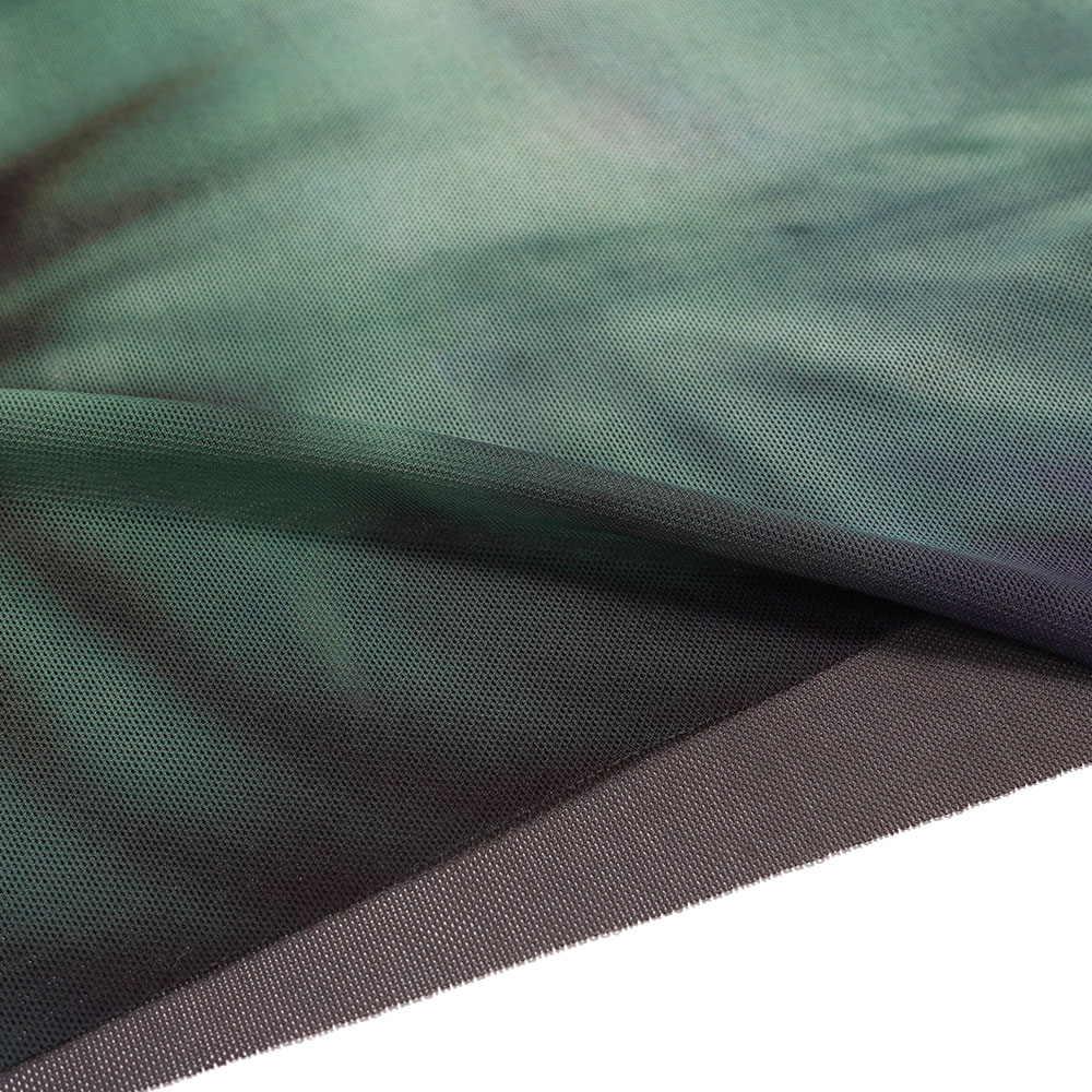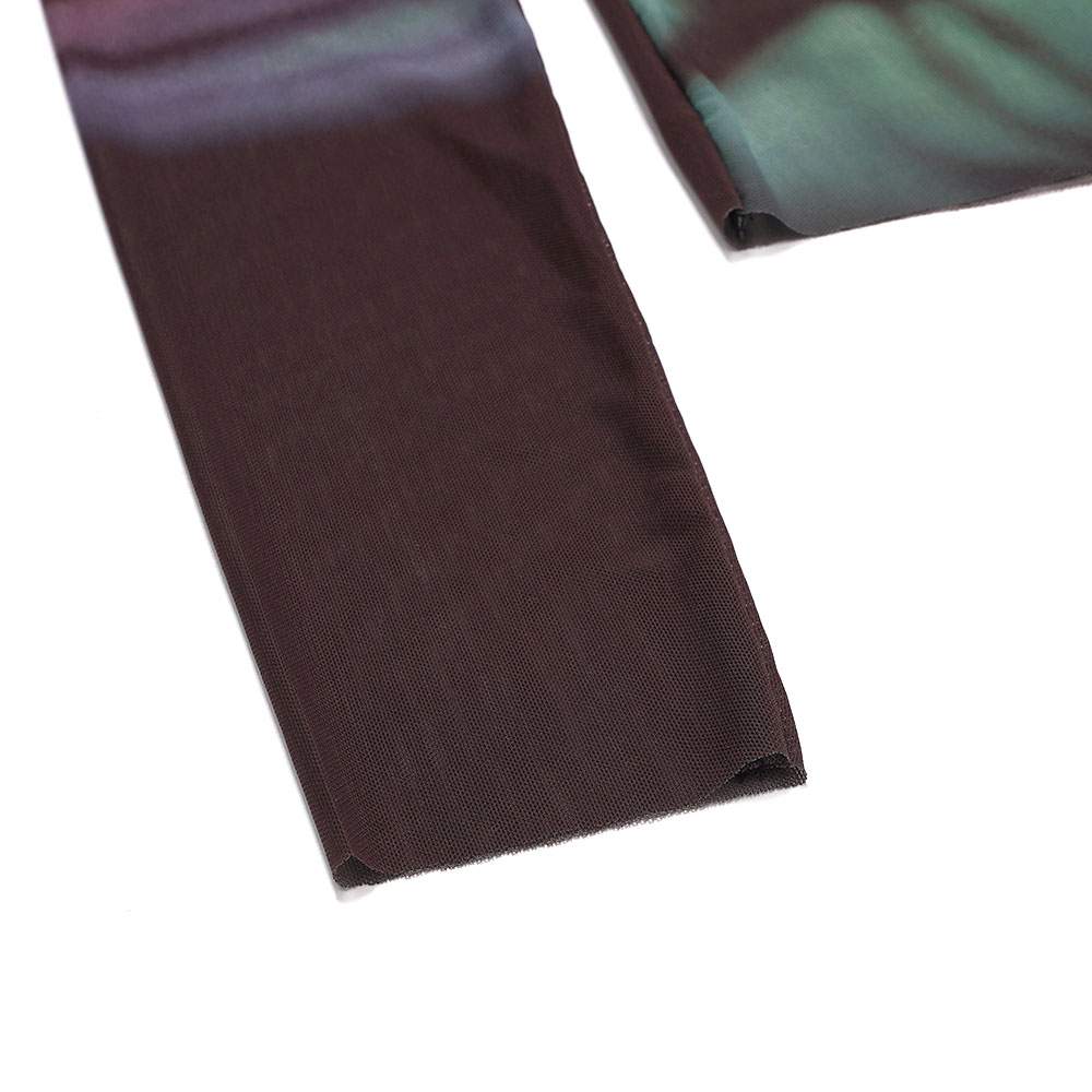 メッシュ素材のシアートップス。フロントとバックに施されたエアブラシのアートワークプリントが目を引く一枚。