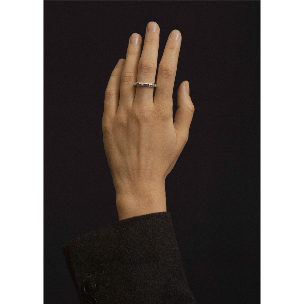 お腹をすかせた蛇のような、先細りの華奢なデザインが特徴のリング。再生シルバー925を使用。シンプルかつエッジの効いたブランドらしいモデル。