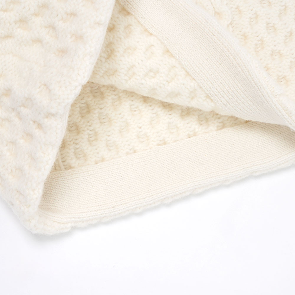 も、レイヤードアイテムとしても活用できます。衿はガーター編みになっており、より英国らしい雰囲気を演出。