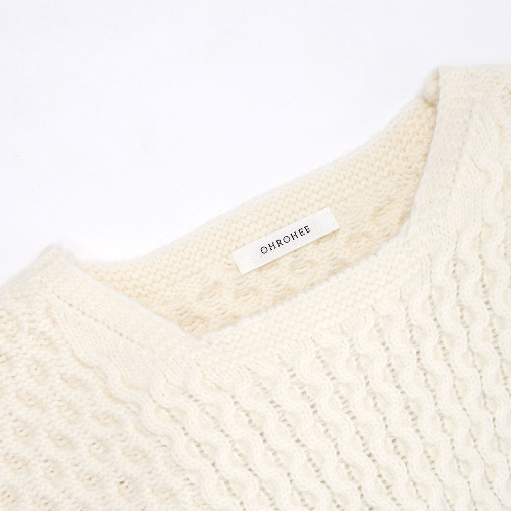 OHROHEEよりTENDER WOOL/CABLE SWEATER W/SKIRT WHITE になります。