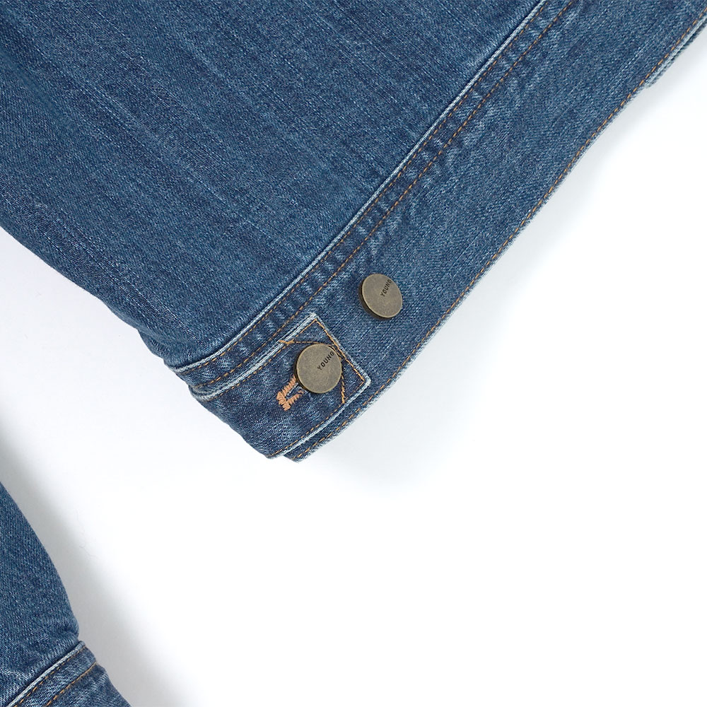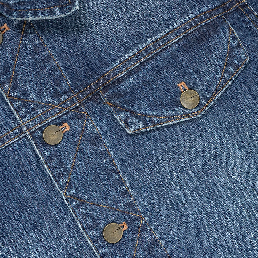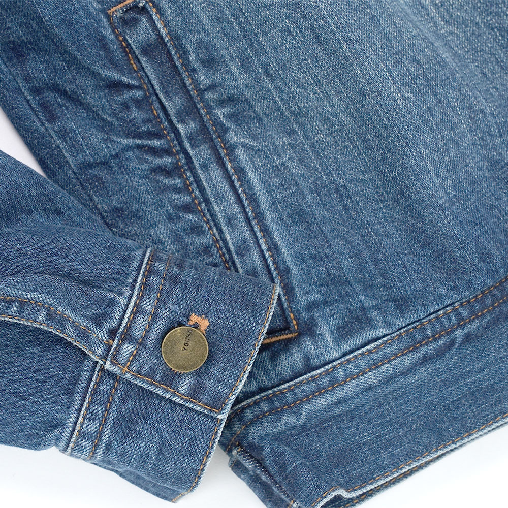 メンズウェアの永遠の定番アイテム、デニム・ジャケットを,ブランドらしく古典とモダンをかけあわせて表現。ウォッシュ加工を施した14オンス・コットンデニムを使用し、コントラスト・ステッチで仕上げ。ジャストサイズなレギュラーボクシーフィット。左胸ポケット、2つのヒップポケット、アンティークブラスロゴボタン付き。ユニセックスアイテム。