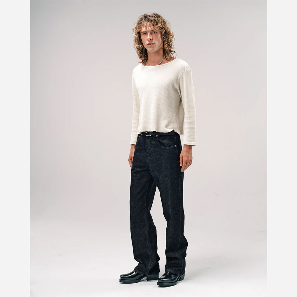 ストーンウォッシュとダメージ加工を施し、ざらっとした仕上がりながらも柔らかな肌触りに。