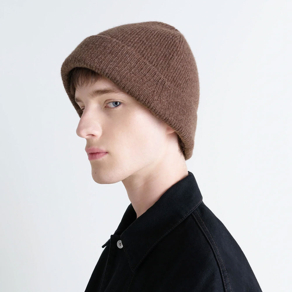 ダブルフェイスのウールブレンド素材を使用したビーニー。密度の高いリブ編みによる、肉厚でもっちりとした質感が特徴。コーディネートのアクセントとしてはもちろん、防寒性にも優れたアイテム。