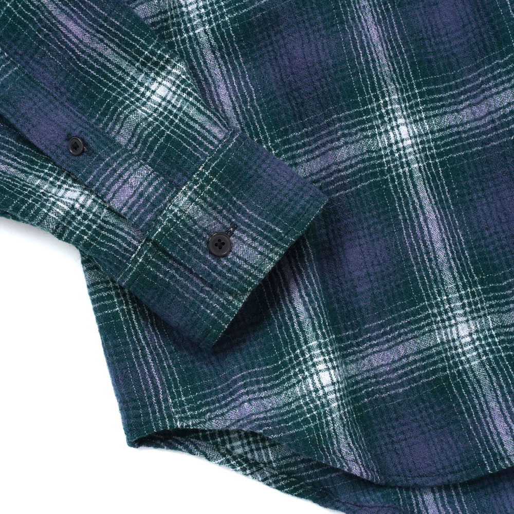 AIRY WOOL CHECK SHIRT FOREST GREEN NAVY A25AS01WN