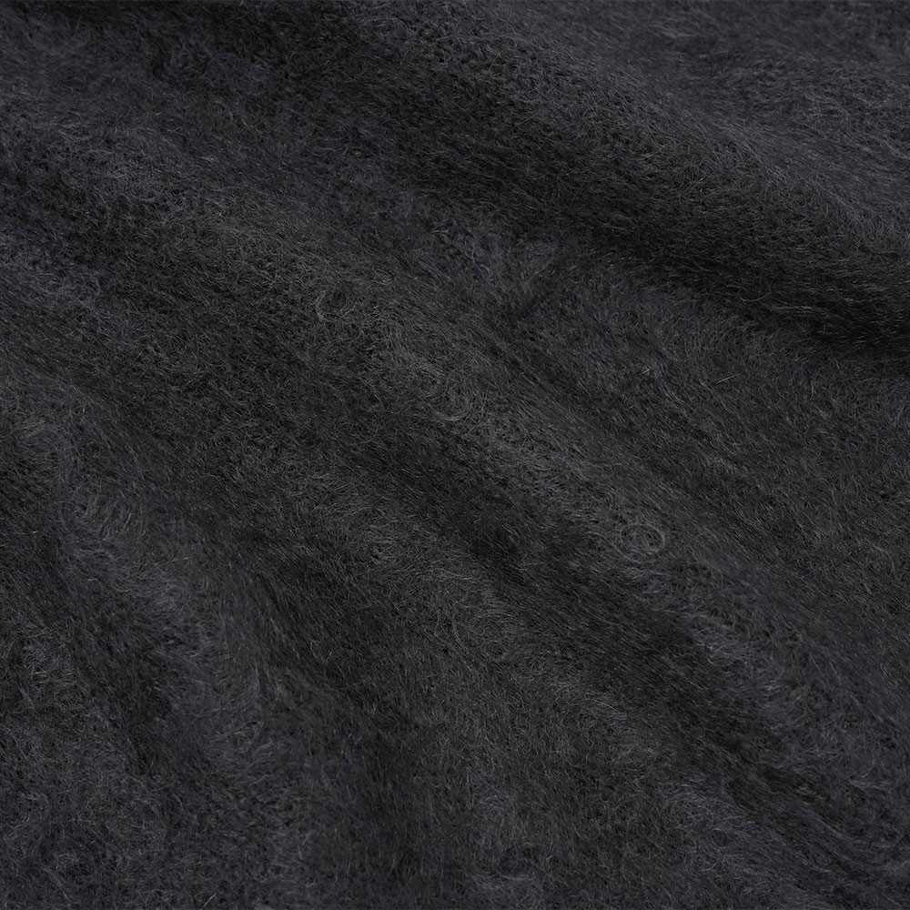 南アフリカ産の柔らかなスーパーキッドモヘヤを甘撚りに紡績し、芯糸には柔らかな天然ウールを使用して編み上げた、ふんわりとした温かみを感じる極上のモヘヤニットです。軽やかで滑らかな肌触りに加え、モヘヤ特有の美しい光沢感と、ボリューム感のある長い毛足が特徴です。