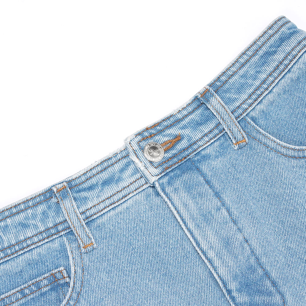 ウォッシュドデニムを使用したフレアシルエットのデニムスカート。