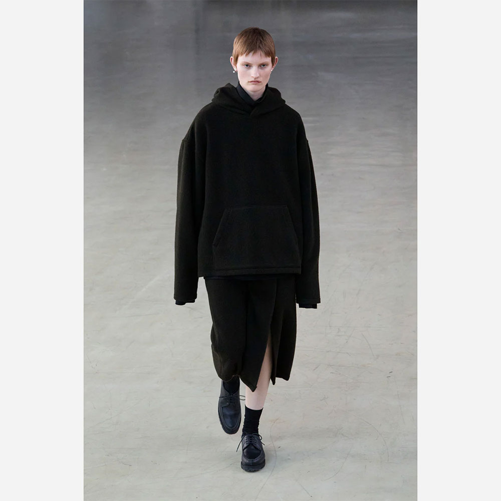RIERではお馴染みの100%ナチュラルウールの超軽量フリースでの新型プルオーバーフーディー。レギュラー着丈、ワイドな身幅のオーバーサイズシルエット。