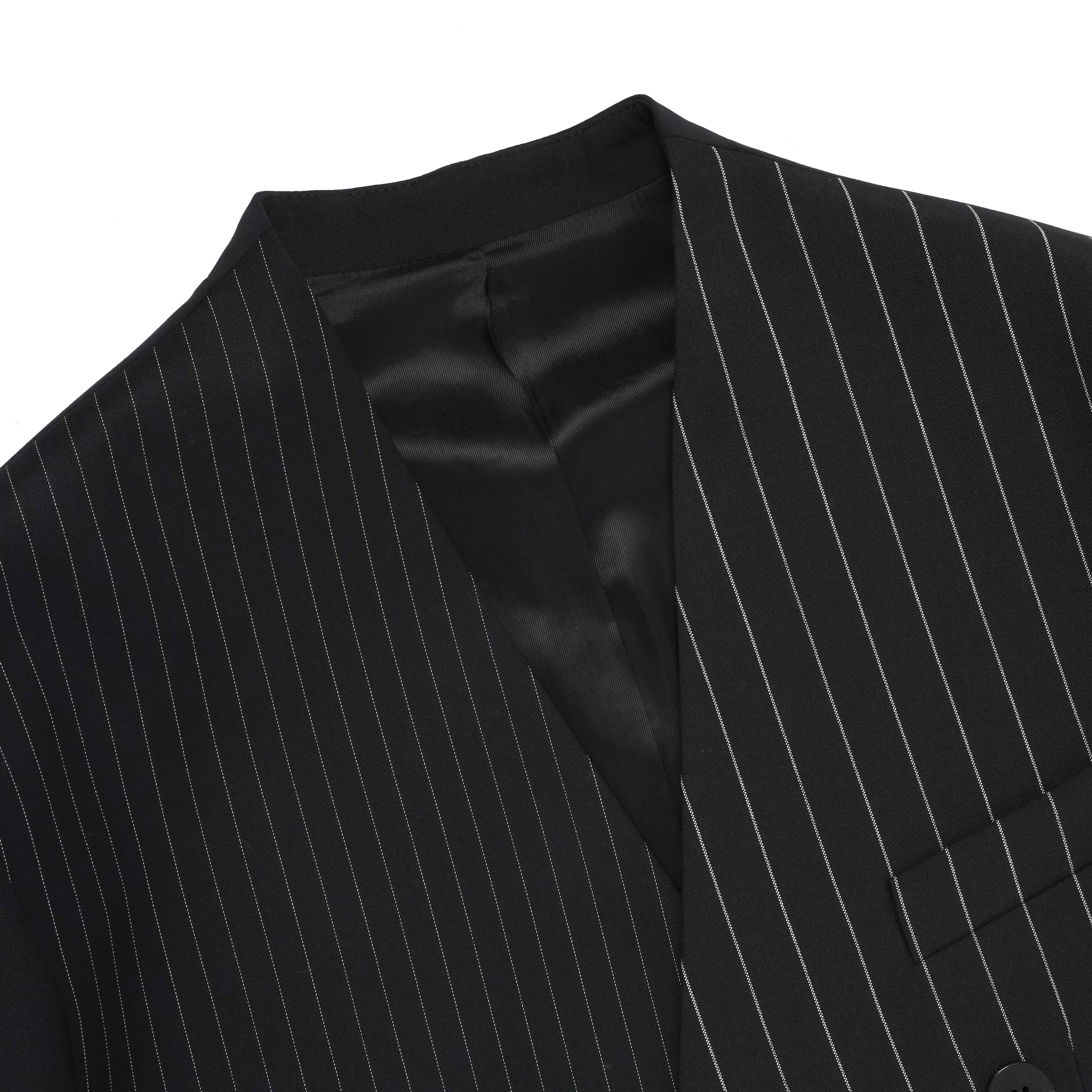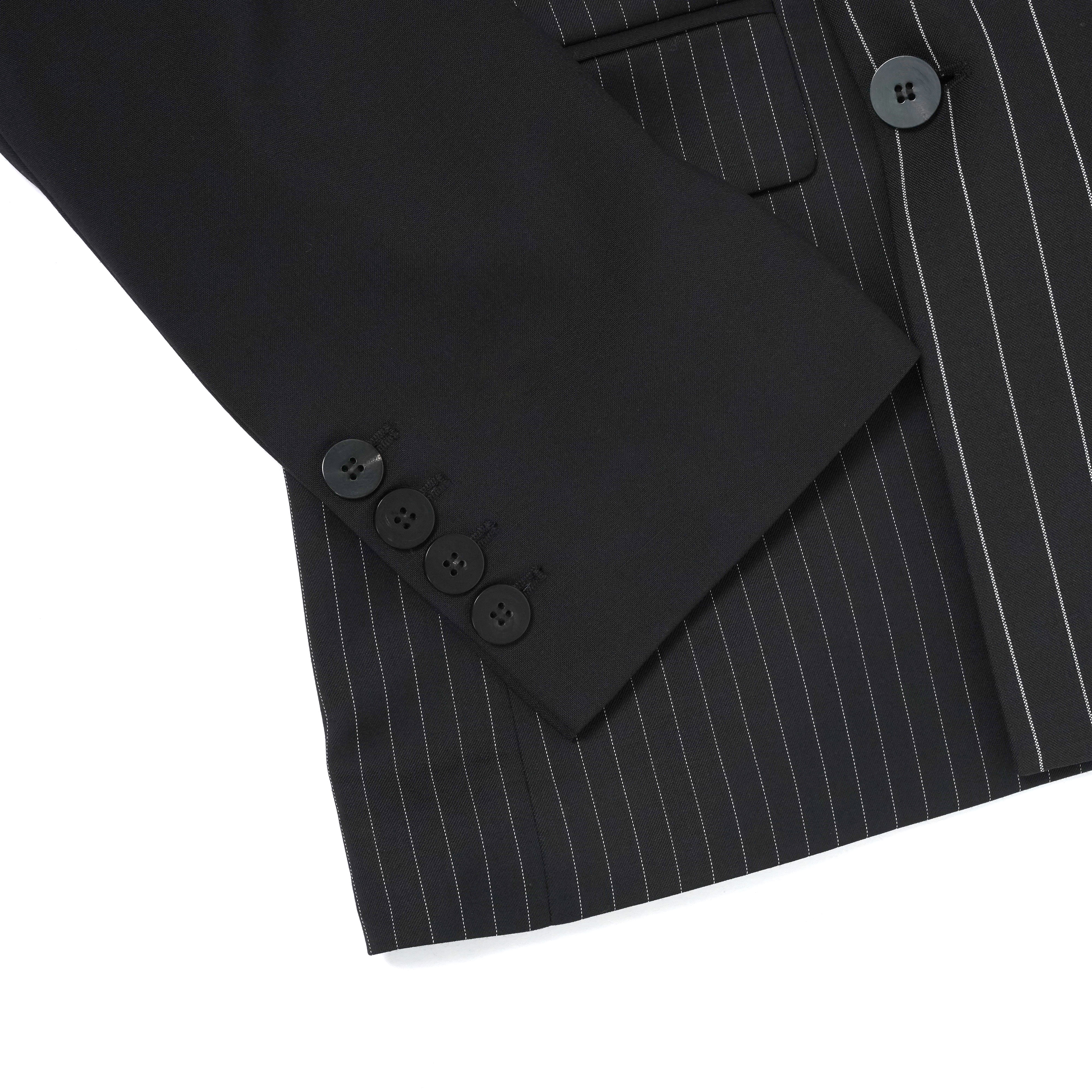 PATCHED PIN STRIPE LAPELESS BLAZER BLACK & WHITE PIN STRIPE