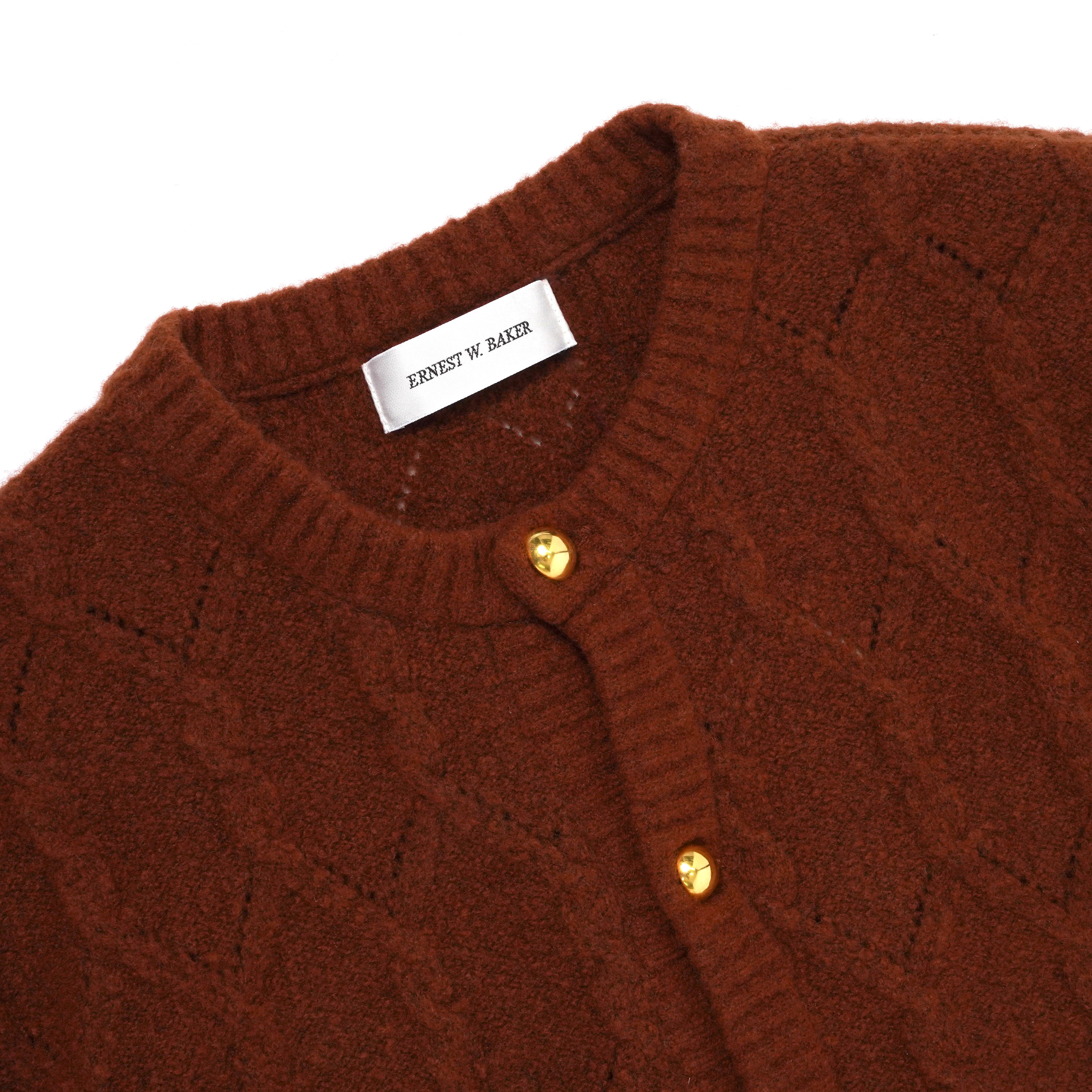 ERNEST W. BAKERよりCASHMERE CHAIN CABLE KNIT CARDIGAN RUSTになります。