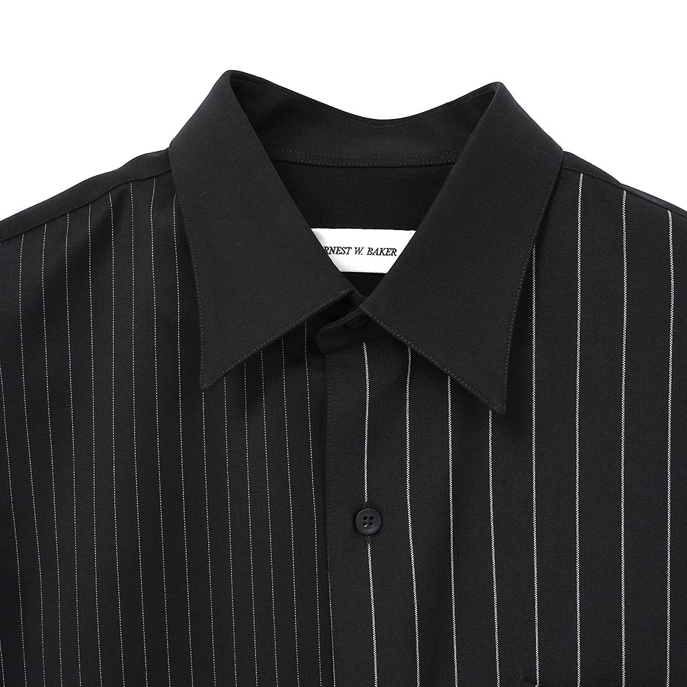ERNEST W. BAKERよりPATCHED PIN STRIPE CLASSIC SHIRT BLACK & WHITE PIN STRIPEになります。