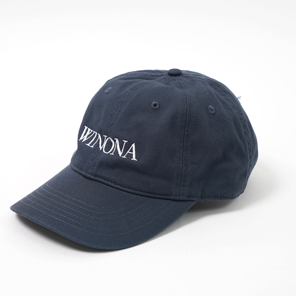 オーガニックコットン100%のIDEAキャップシリーズ。フロントにアメリカの90sアイコンでもある女優Winona Ryder "WINONA"の刺繍入り。クラシックでソフトな6パネル。