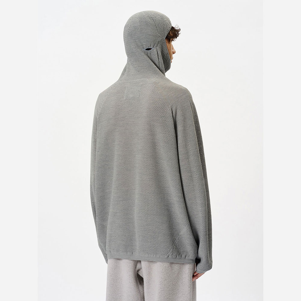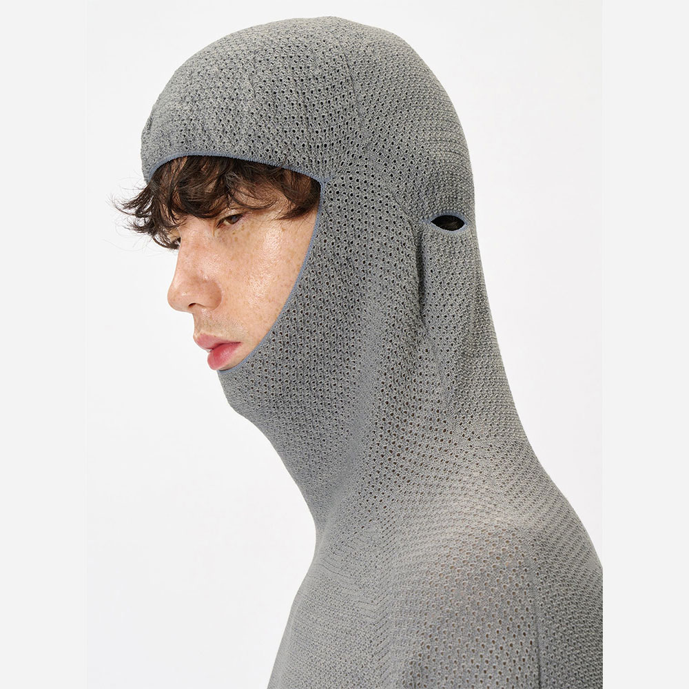 全体を細かな孔が開いている編み地で編み立てた、バラクラバ型フードのニットトップ。無縫製のWholegarmentテクノロジー によって、縫い目が身体に触れず着心地に優れています。ウールとポリエステルの糸をミックスし、快適なあたたかさと丈夫さをあわせもち、都市での生活からアクティビティシーンまで活用できます。