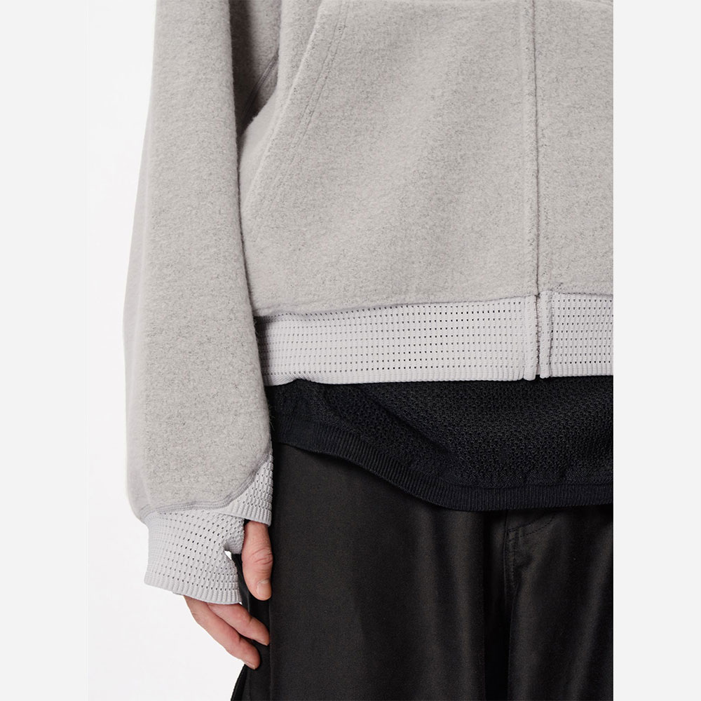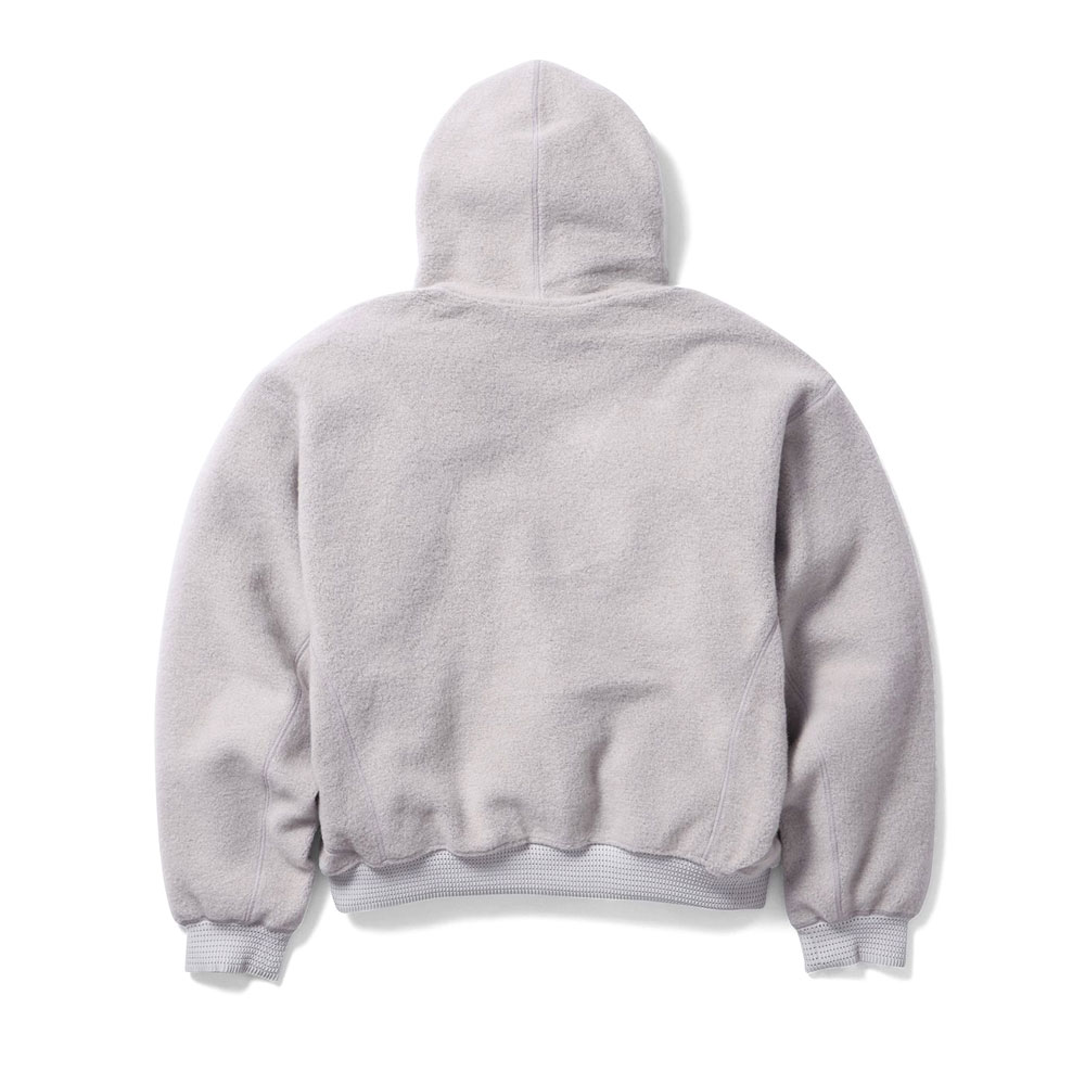 あたたかみがあり、柔らかなウールフリースを使用したリラックスフィットのフーディ。独特な起毛感のある生地と際立った切り替えのラインが特徴で、特殊なメッシュ編みのリブを袖と裾に使用しています。