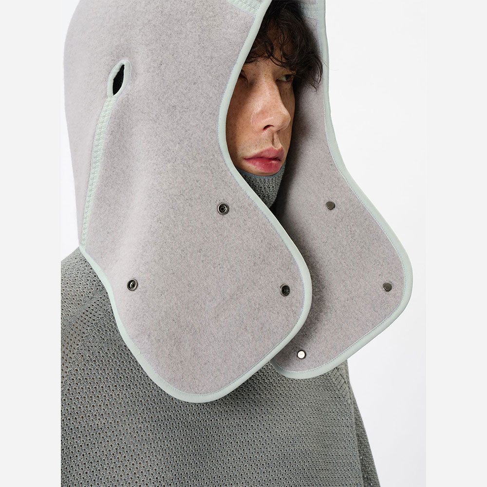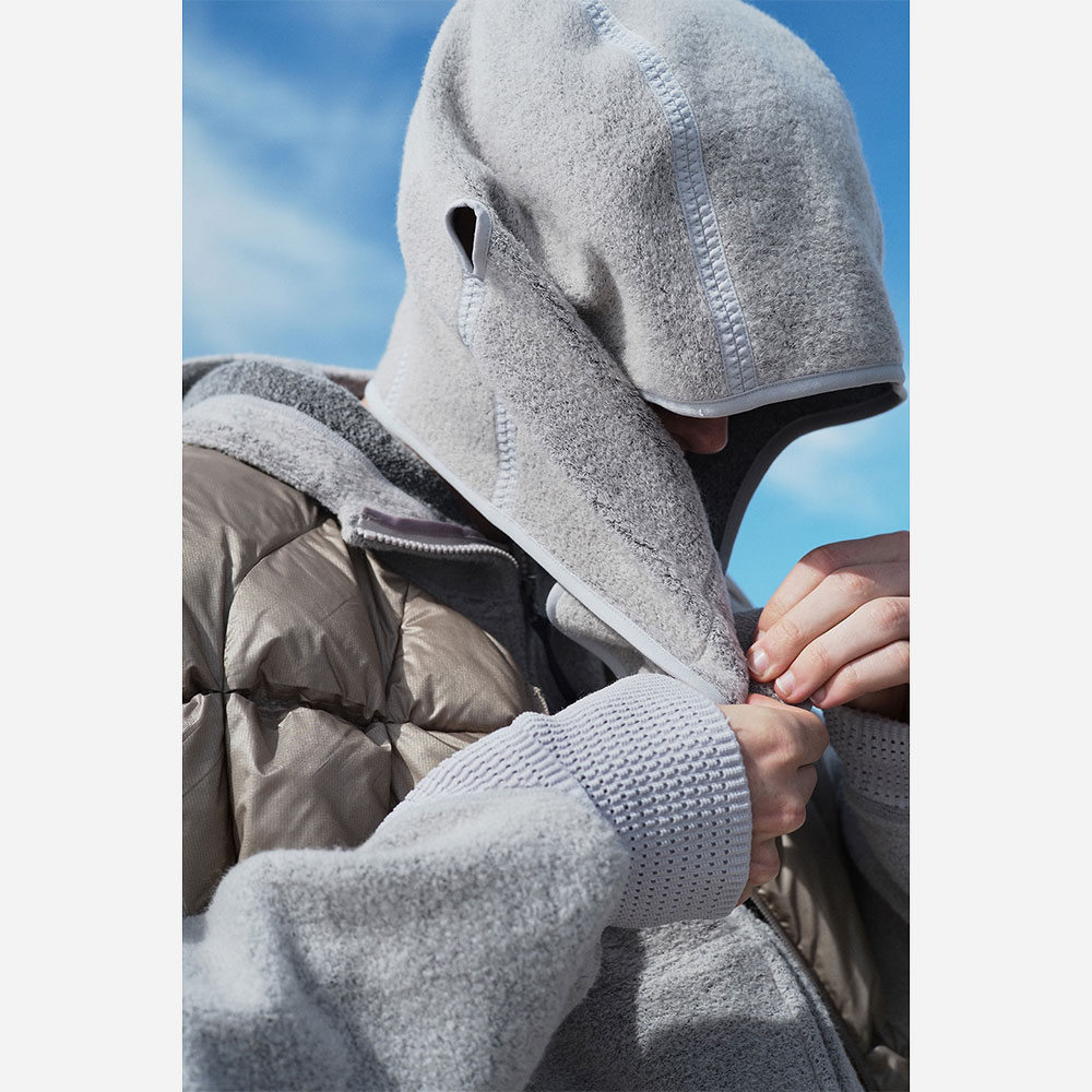 機能とデザインのイノベーションを追求するGoldwin 0のFW25コレクション。あたたかみがあり、柔らかなウールフリースを使用したフード。寒い季節に首から上を守るアクセサリーとして機能します。独特な起毛感と際立った切り替えのラインが特徴です。
