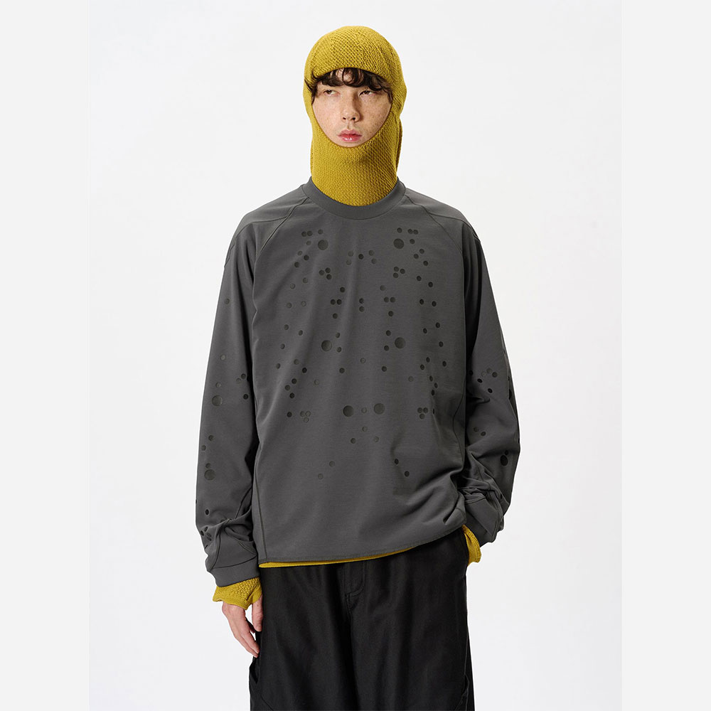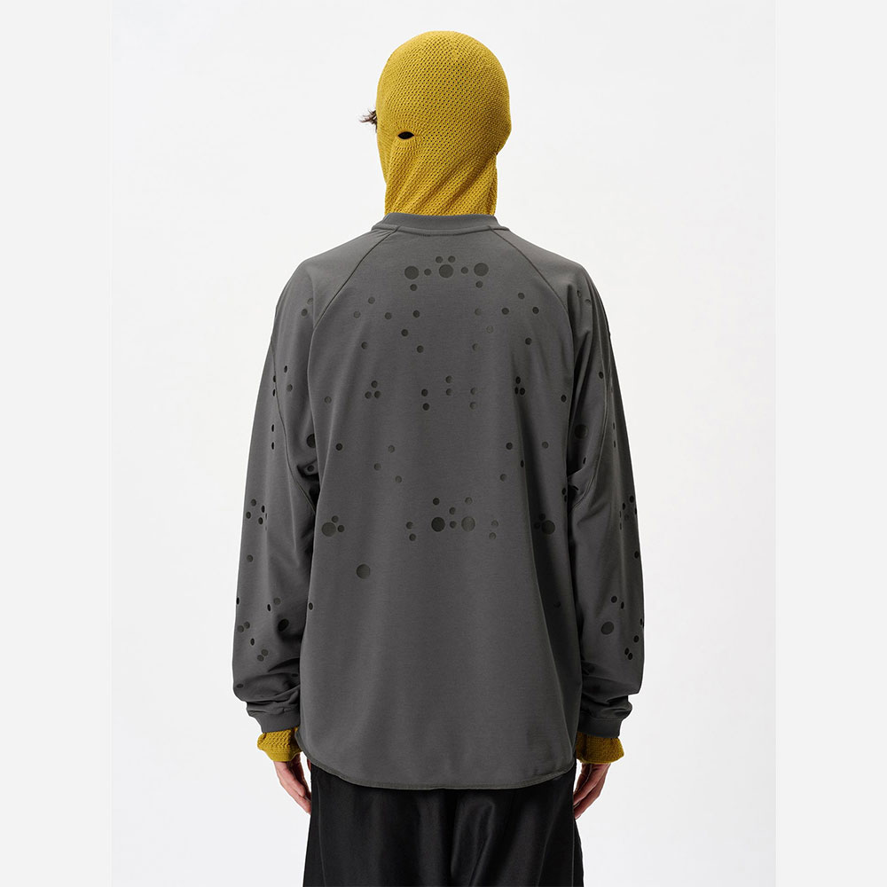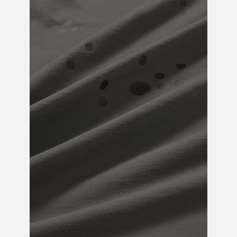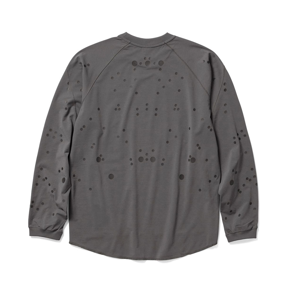 モーションキャプチャーの人体マッピングから着想を得た、再帰反射ドットプリントのTシャツ。生地はイージーケアでハリのあるポリエステル 100%の素材を使用。滑らかな肌触りで生地にはドレープ感があり、柔らかな印象のシルエットを描きます。