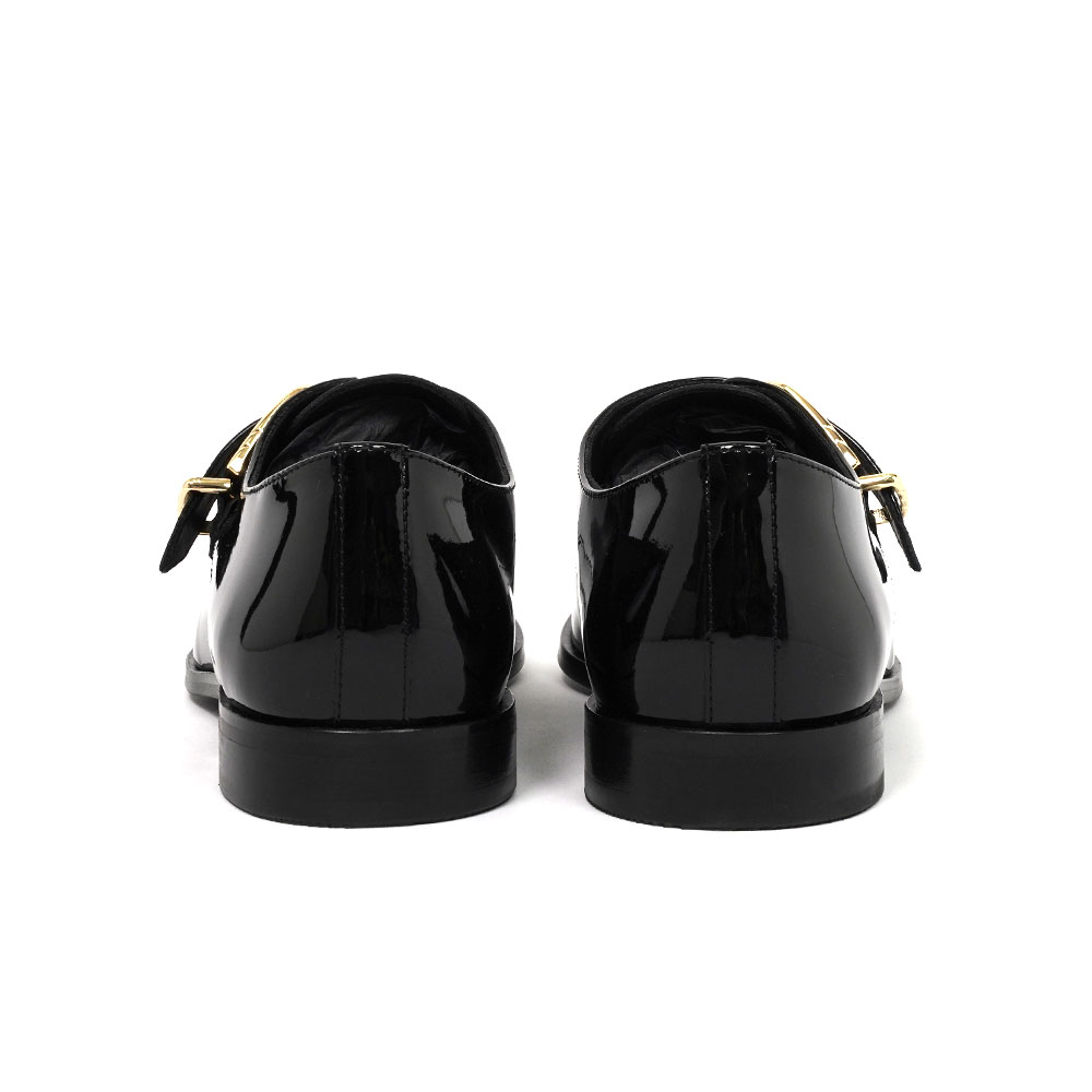 ドレスな雰囲気を醸し出すパテントレザーのアッパーを採用したモンクシューズになります。ドレッシーなコーディネートは勿論、敢えて古着やカジュアルなコーディネートの外しとしてもお使いいただけます。