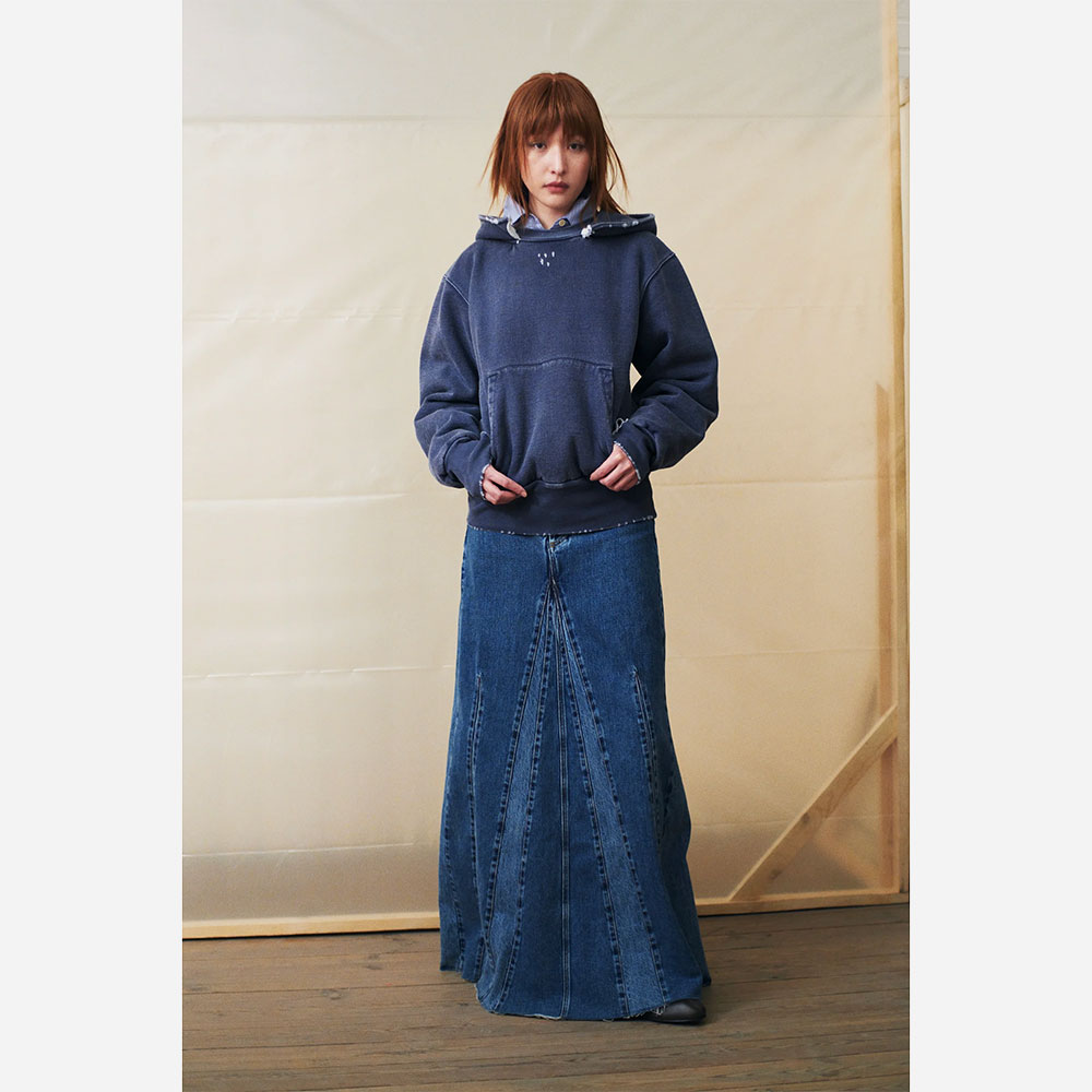*本製品は独自の加工工程により製造されており、色を生地にプリントした後、裏面は未加工のまま仕上げています。これにより各製品に個別の風合いが生まれます。この技法により、明るい色の衣類や表面に色移りする場合があります。着用者の体型に合わせて形が整い、時間の経過とともに自然にダメージ加工が進み、デザインプロセスが完成します。