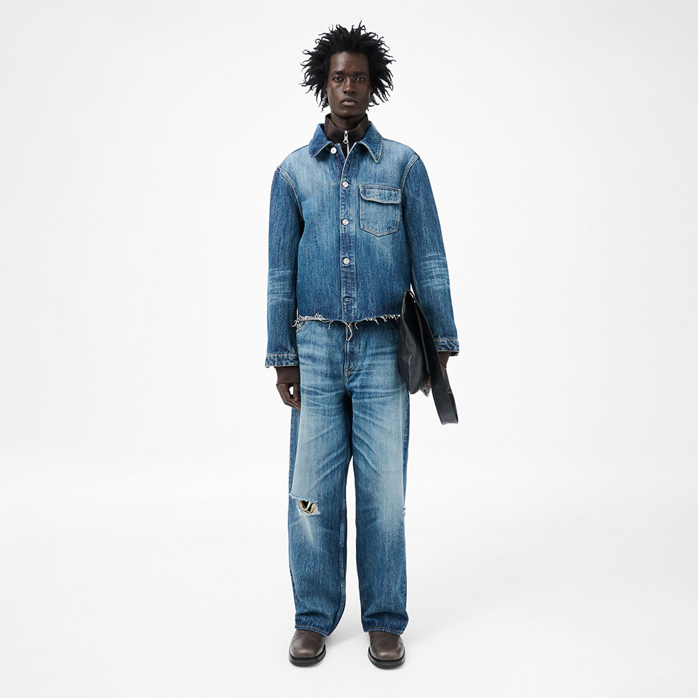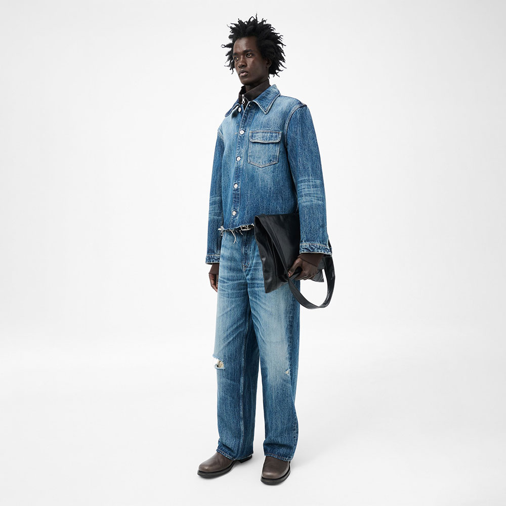 イタリア製コットンヘンプ生地を使用したバギージーンズ。ハイウエストのゆったりとしたワイドシルエット。インディゴ染め、手作業によるフェード加工、YKKジップフライ、スチールリベット、5ポケット、エンボス加工のOUR LEGACYパッチが特徴です。