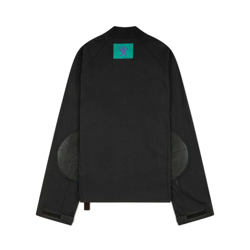ストレッチ性のあるジャージー素材を使用したモックネックTシャツ。エルボーパッチやベルクロ仕様の袖口をあしらい、タフさと上品さを兼ね備えたデザインが魅力。