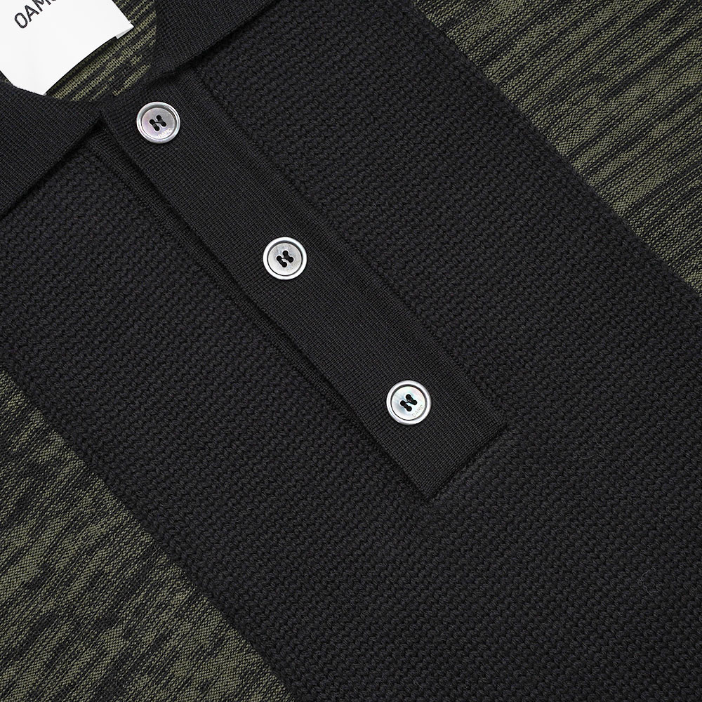 OAMC / オーエーエムシーよりDOUBLE COLOR POLO LONG SLEEVE KNIT BLACK/GRAY になります。