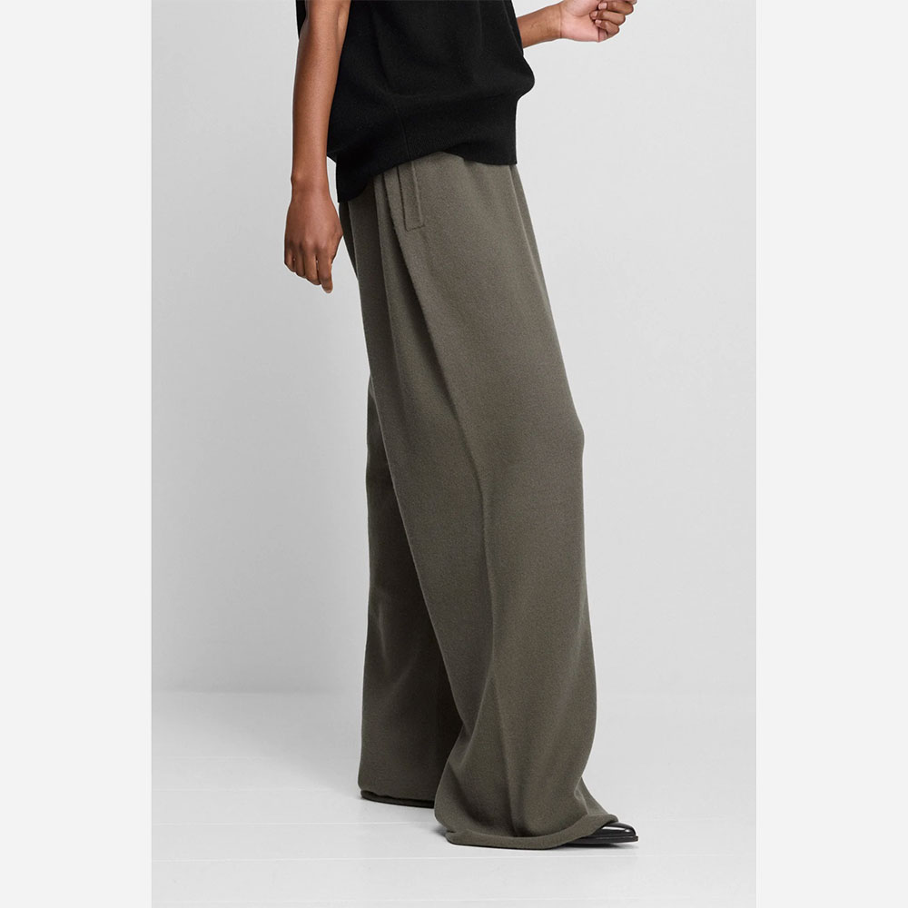 ゆったりとしたオーバーサイズのカシミヤトラウザーで、便利なサイドポケット、伸縮性のあるウエストバンド、そしてフィット感を調整できるドローストリングを備えています。全体的にルーズでリラックスしたシルエットに、裾はあえてカットオフ仕様で仕上げ、遊び心あるスタイリングと比類のない快適さを叶える定番アイテムです。