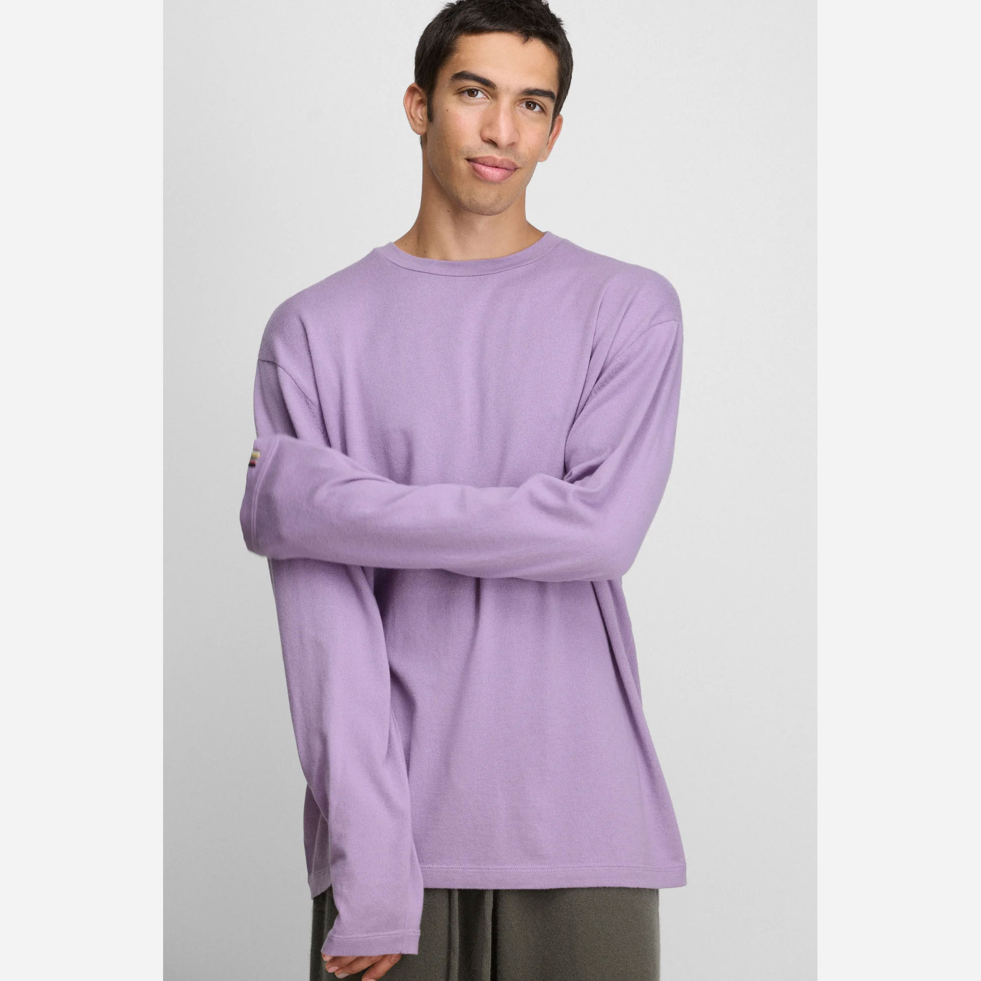 ショートスリーブTシャツのRIKををロングスリーブにアレンジしたアイテム。ゆったりとしたオーバーサイズのフィット感が特徴。コットンとカシミアのブレンド素材を使用しており、さらりとした心地よい肌触りで、シーズンを問わず通年で着用可能。