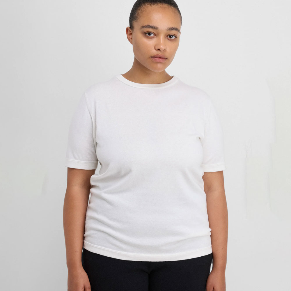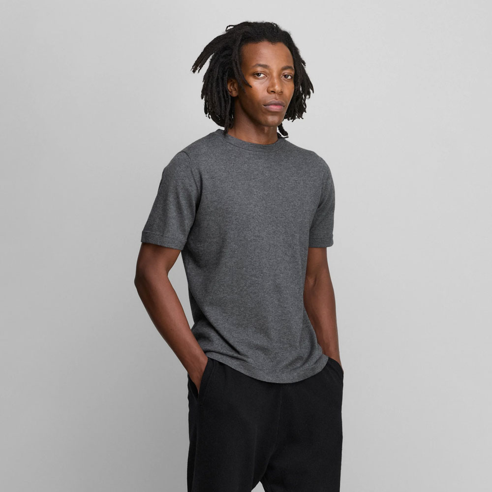 james は汎用性の高い定番アイテム。コットンカシミヤ混紡を使用した、快適な半袖Tシャツです。30%カシミヤ、70%コットンの軽やかな素材は柔らかさと通気性を兼ね備え、ミニマルなワードローブにふさわしい上質なベーシックに仕上がっています。レギュラーフィット。