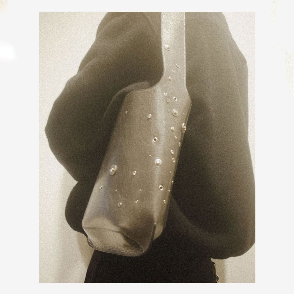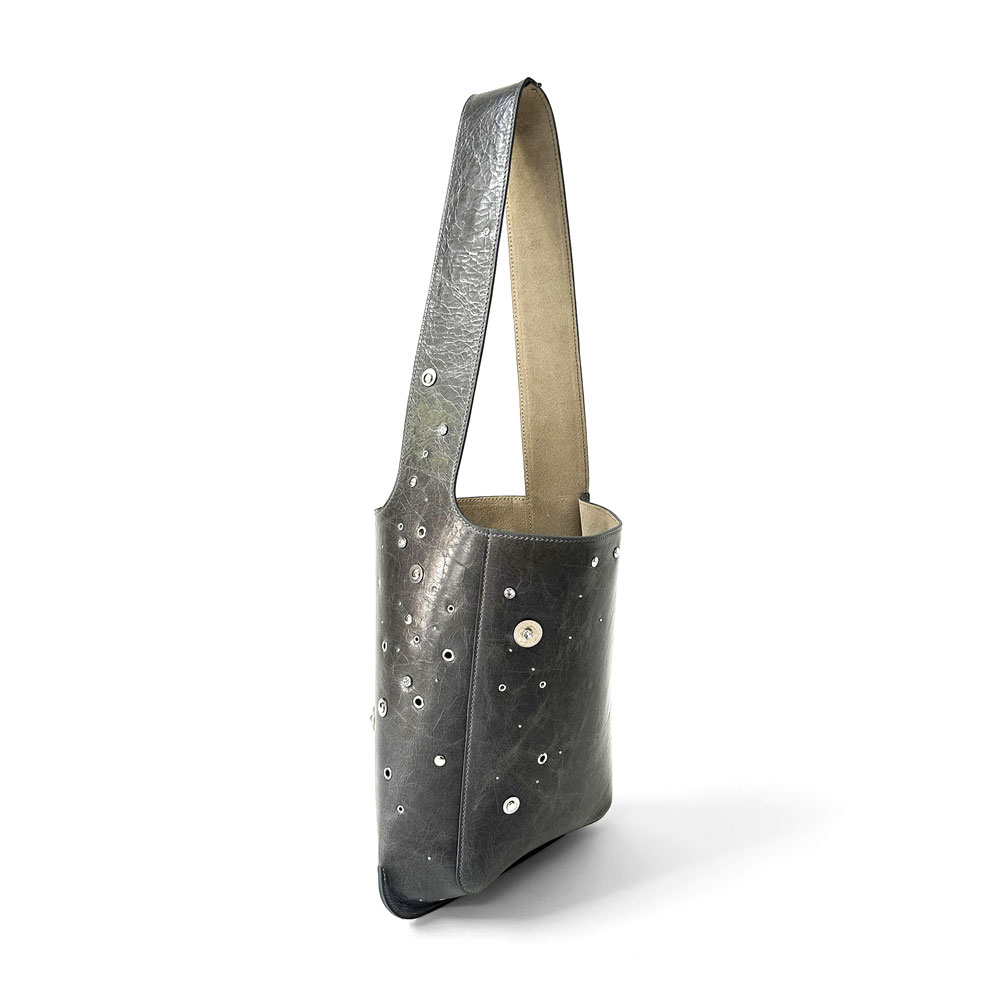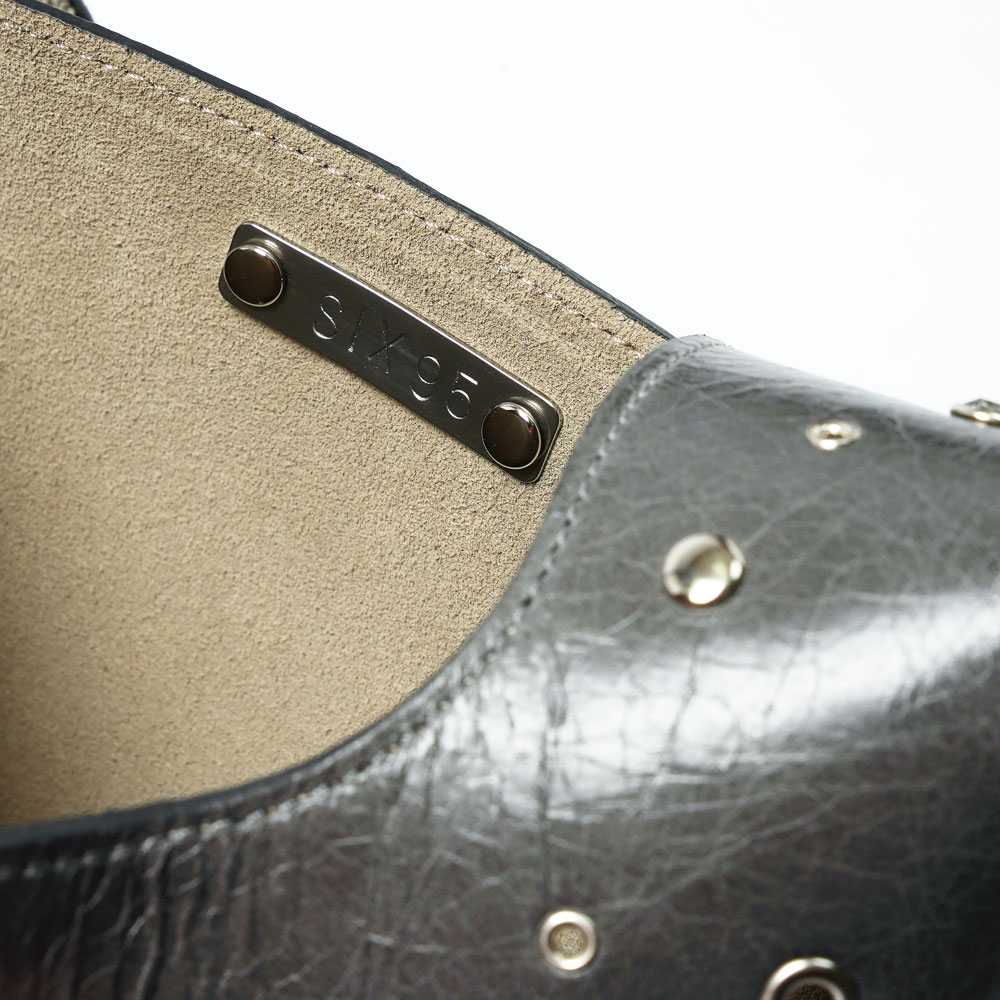 SIX 95よりLEGAL TENDER BUCKET BAG ELEPHANT GREY WITH SCATTERED STUDS になります。