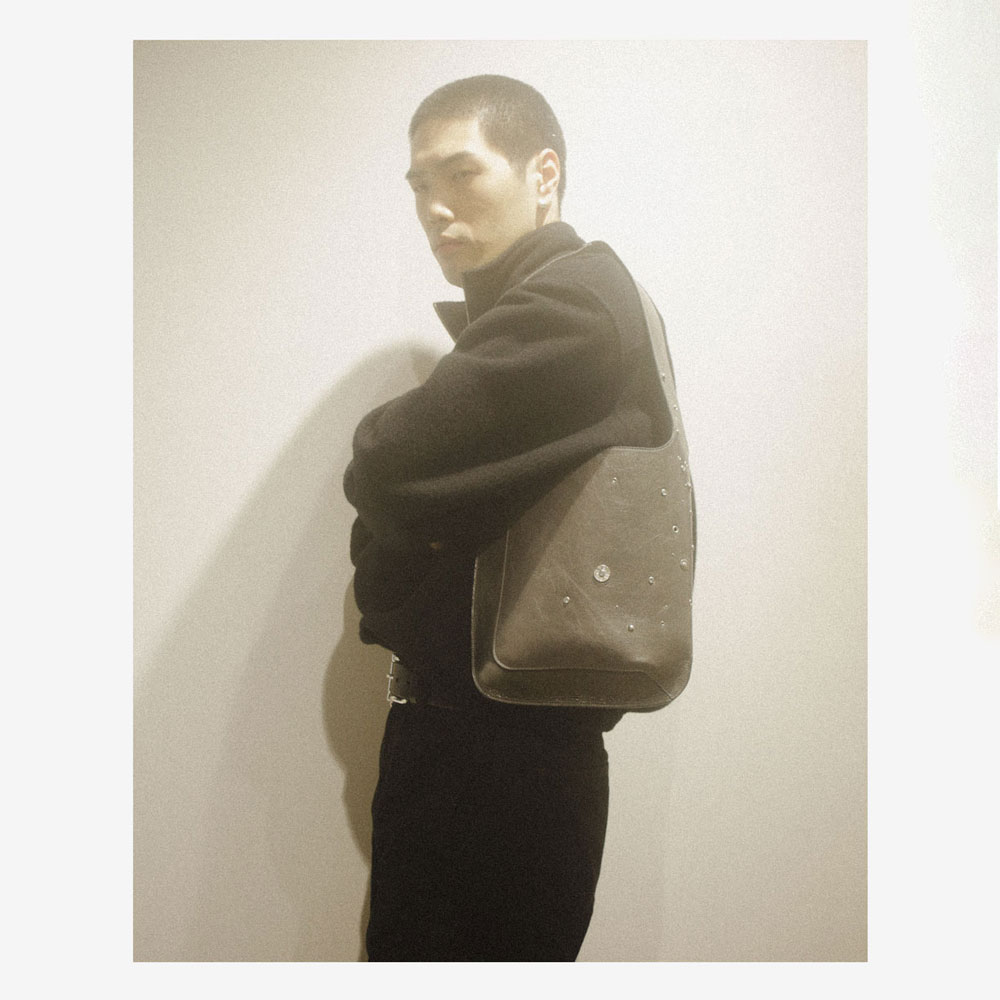 艶のあるクリンクルレザーならではの豊かな表情と、ミニマルな構造が融合したデザイン。