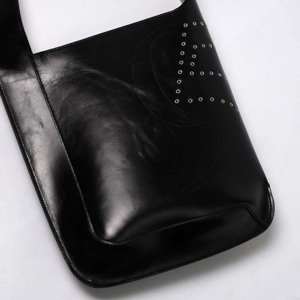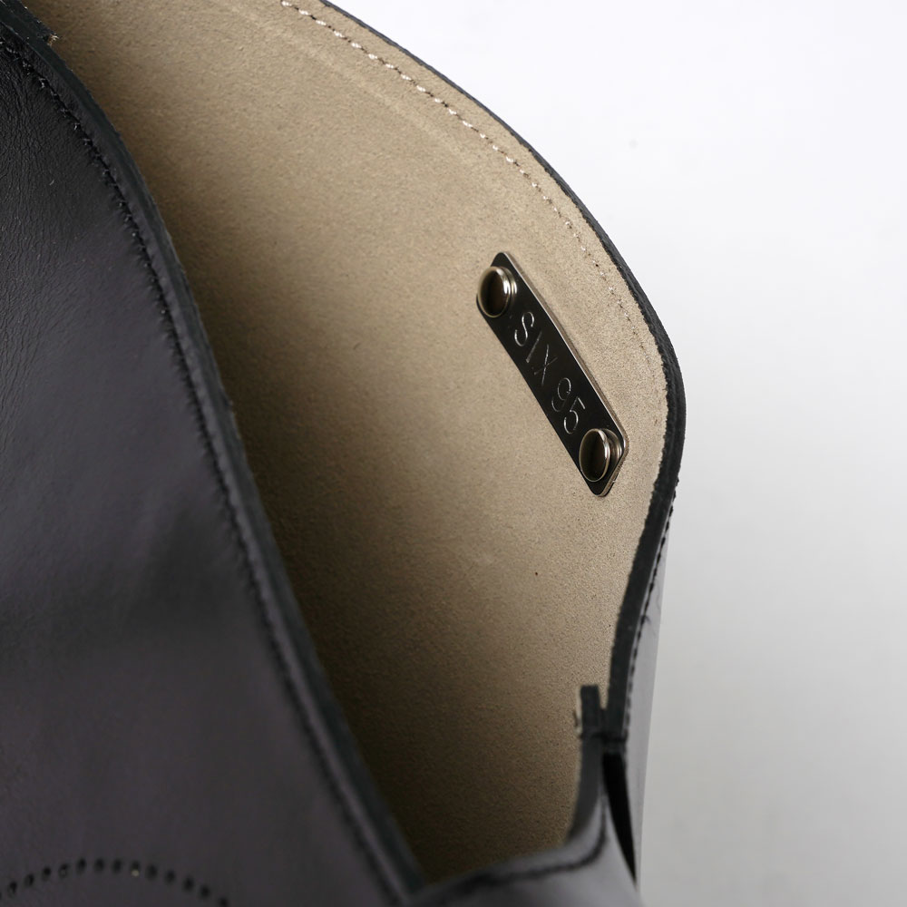 艶のあるブラックのカーフレザーを使用したバケットバッグ。