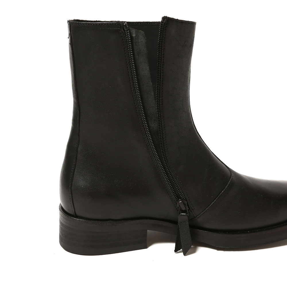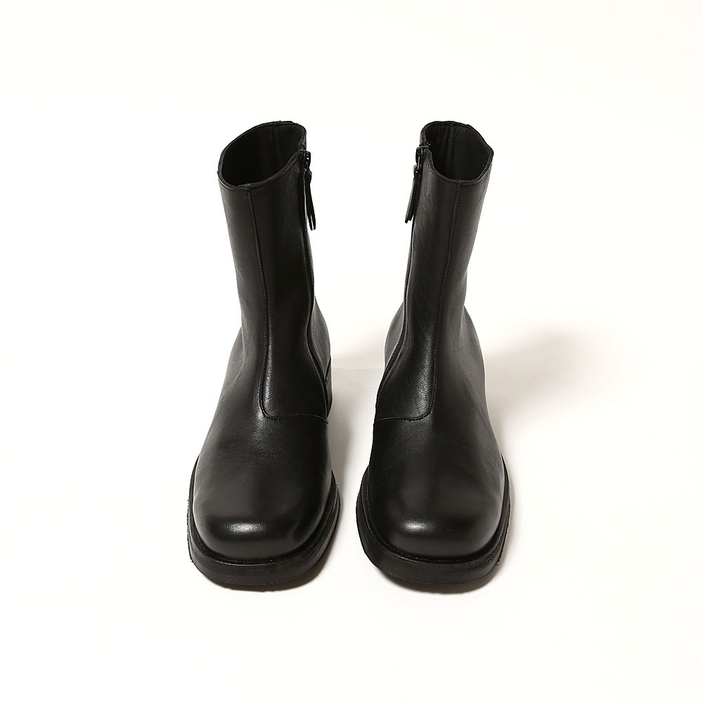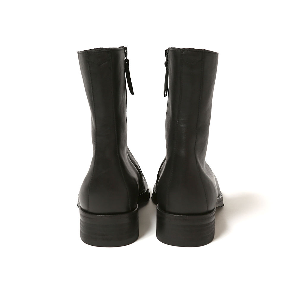 イタリアンカーフレザー、ビブラムアウトソール、及び革のプルタブ付きサイドジップクロージャーを使用したミドルブーツ。控えめなルックスながら4cm程のヒールで足長効果も。クラシカルなデザインに、現代的なツイストを加えたブランドの定番銘品。