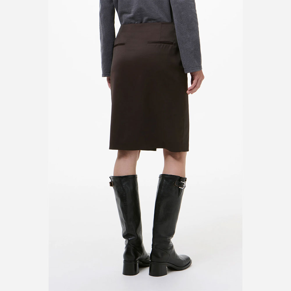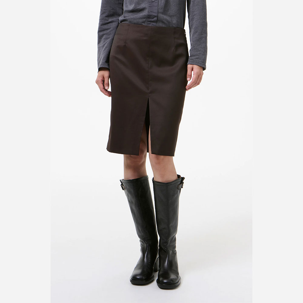 すっきりとしたペンシルシルエットに、フロント中央のスリットが上品なアクセントを添えています。