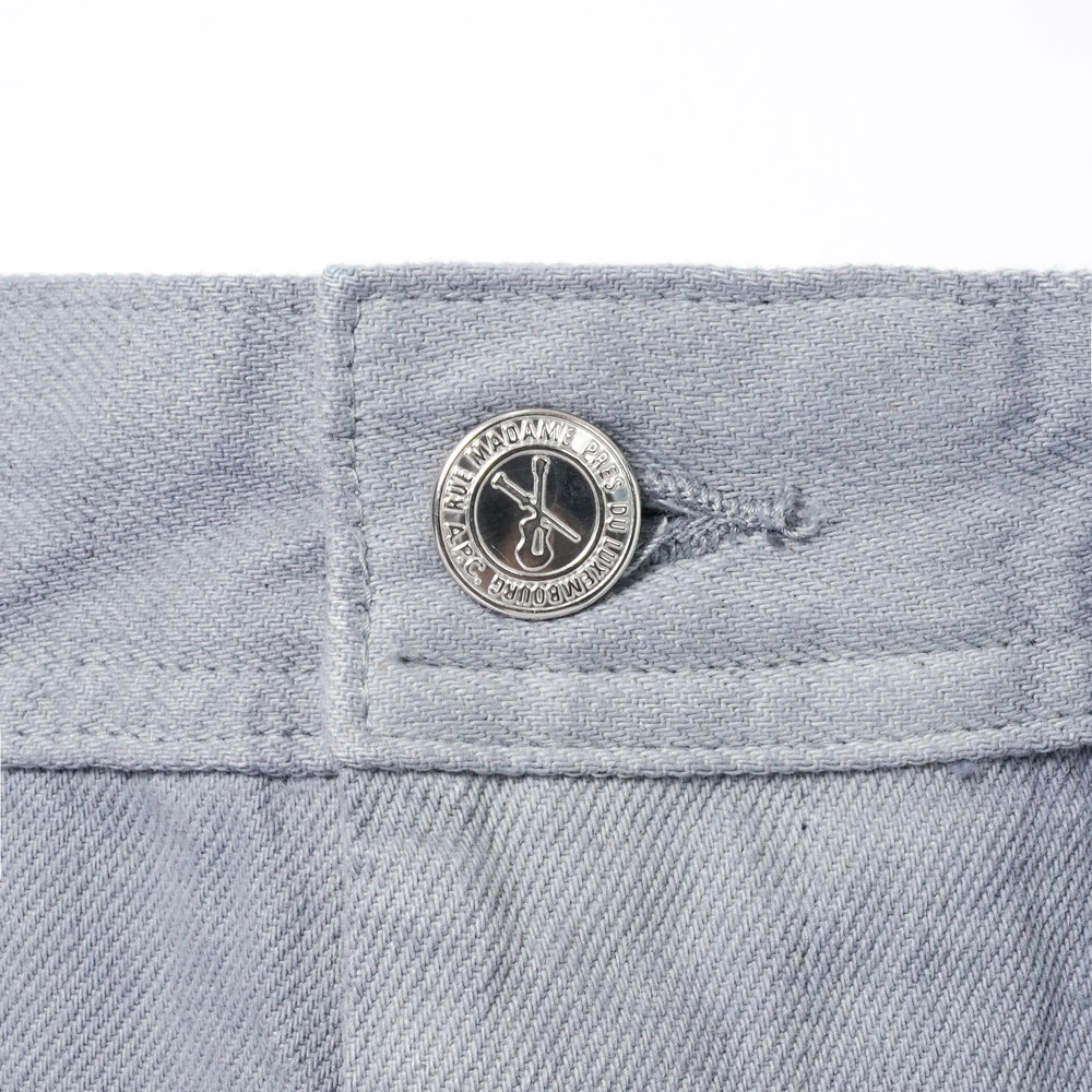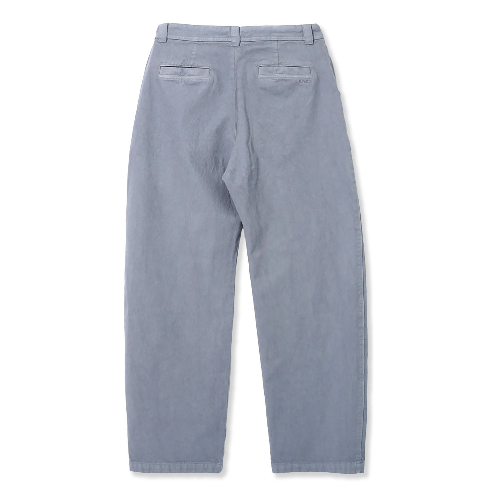 A.P.C.らしいクラシックな感性を体現した「Dan チノパンツ」は、コットン100%の柔らかな素材感に、程よくリラックスしたストレートシルエットとミドルウエスト設計を採用し、ブルーグレーの落ち着いた色味と“剣とギター”ボタンのさりげないディテールが、デイリーからフォーマルまで幅広いスタイリングに対応する一本です。