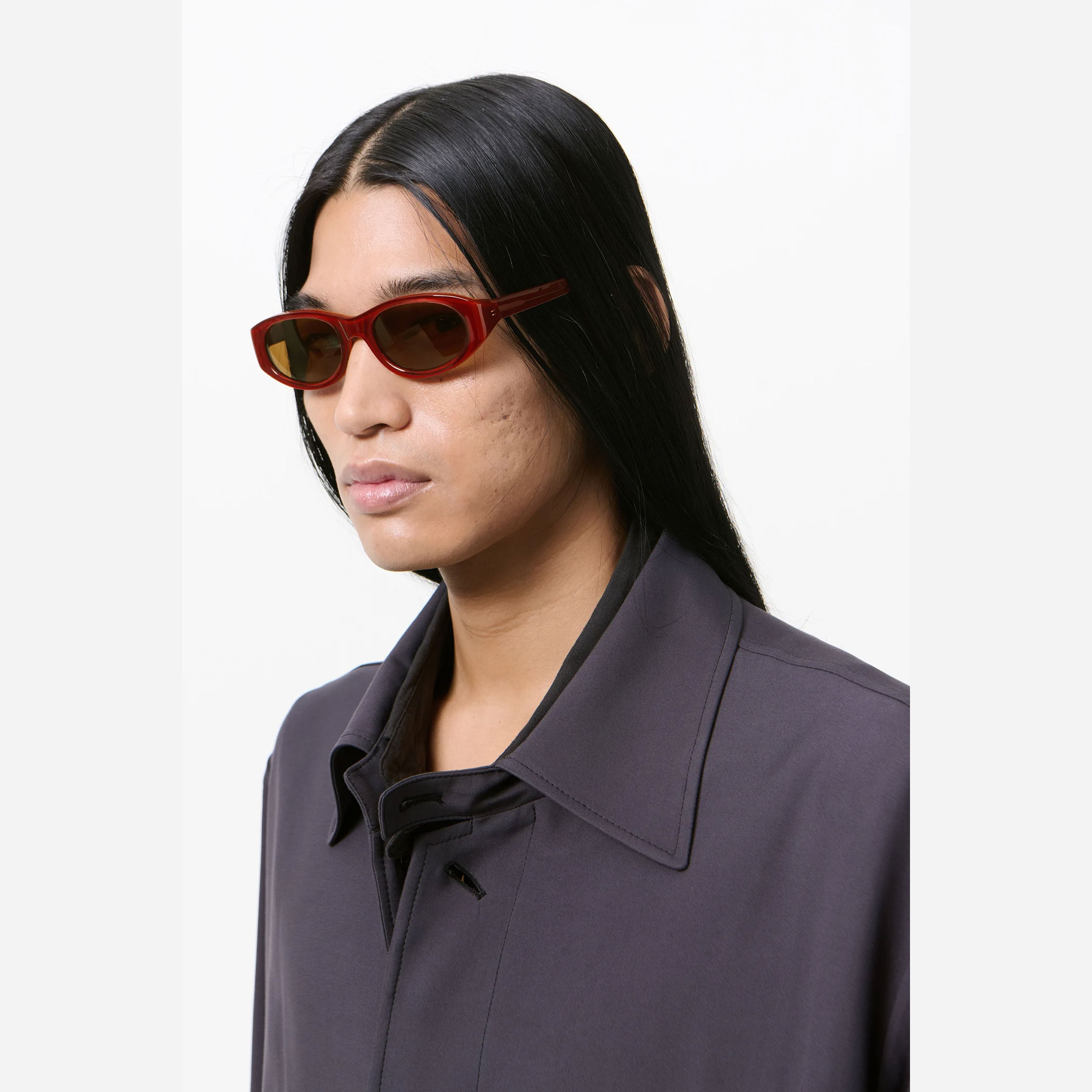 老舗Mazzucchelli社製のアセテート素材と世界有数のレンズメーカーであるCarl Zeiss Vision社製レンズを使用。トラベルケース付き。ユニセックスモデル。