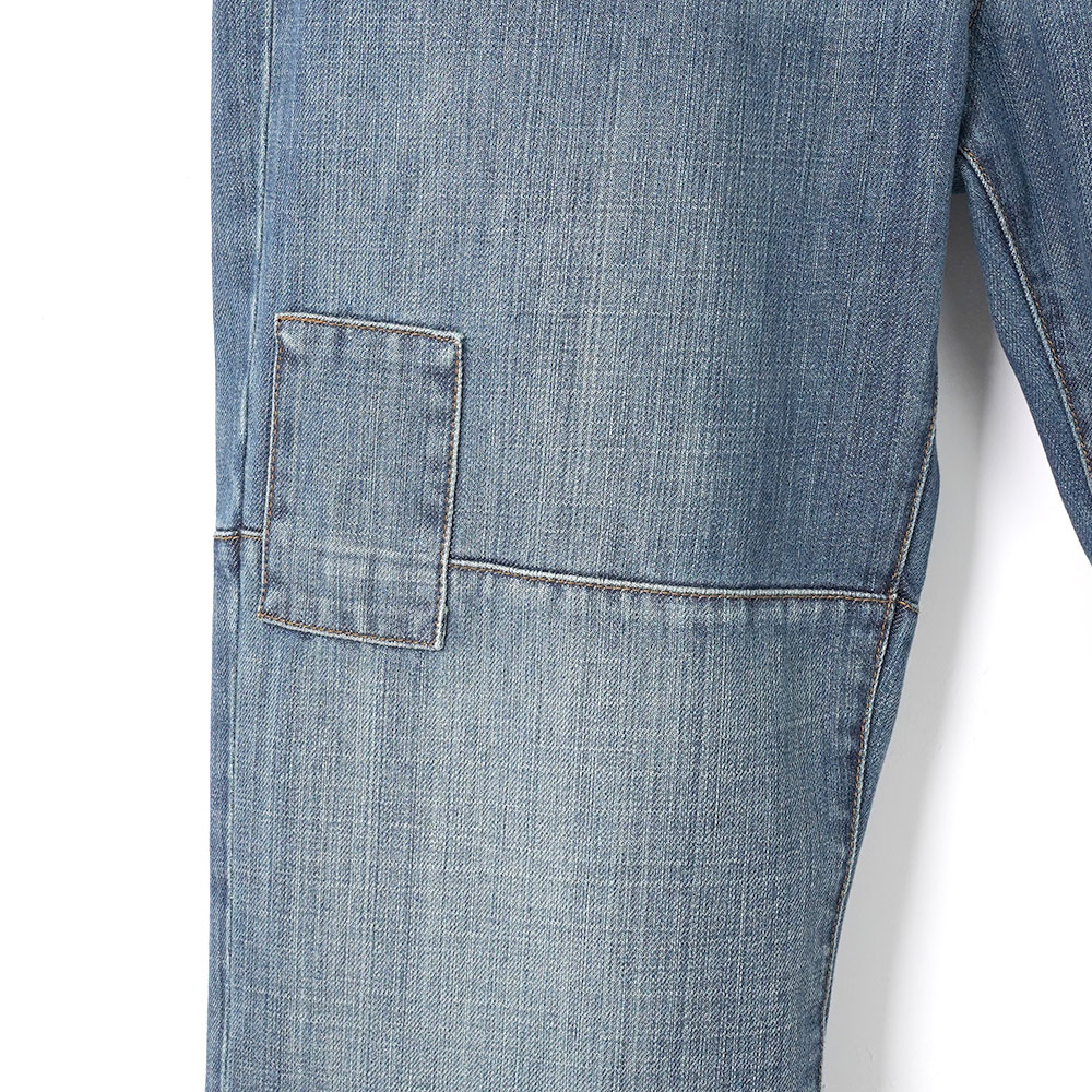 パッチデザインを施したパッチドブルーのヴィンテージウォッシュが、奥行きのある表情を生み出します。