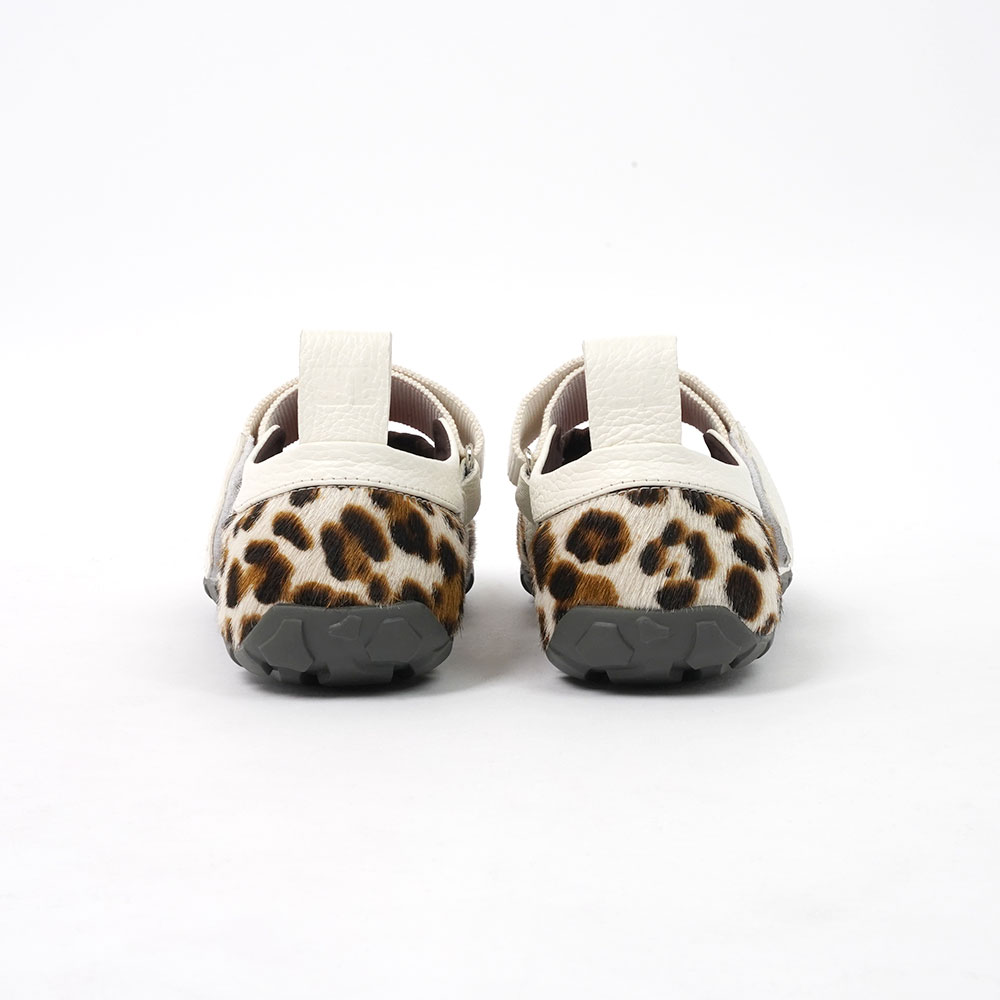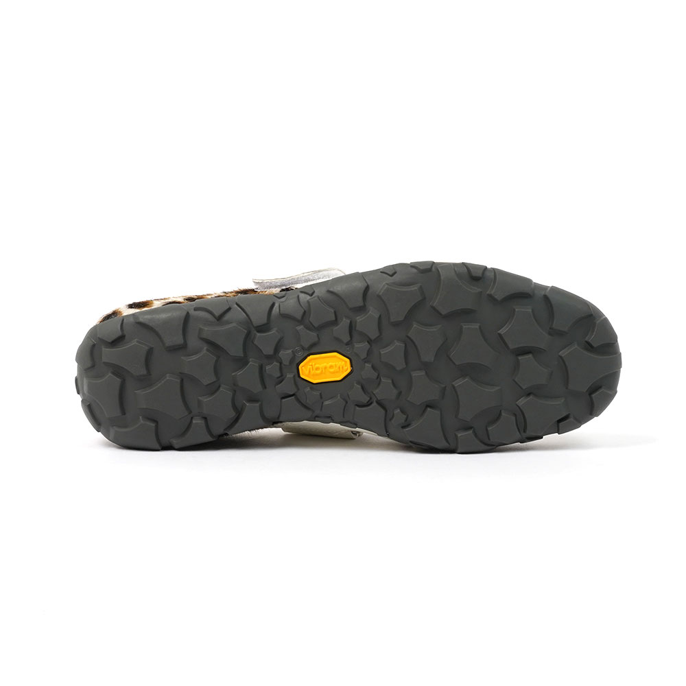 ハラコ素材にアニマルプリントを施し、アウトソールはビブラムソールを採用しております。