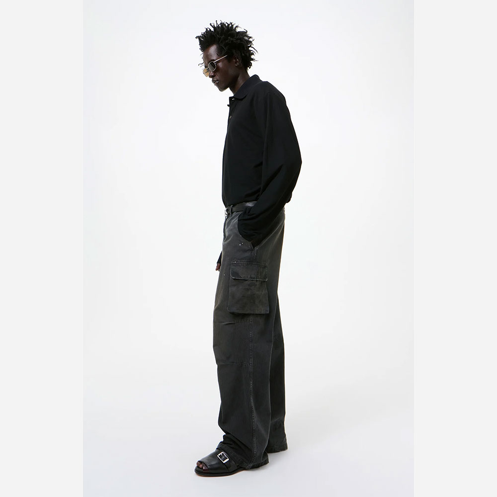 マウントカーゴは、ゆったりとしたストレートシルエット。サイドカーゴポケット、ダーツ入りの膝、YKKジップフライ、コロゾボタン、真鍮スナップ、シングルバックポケットを備えています。