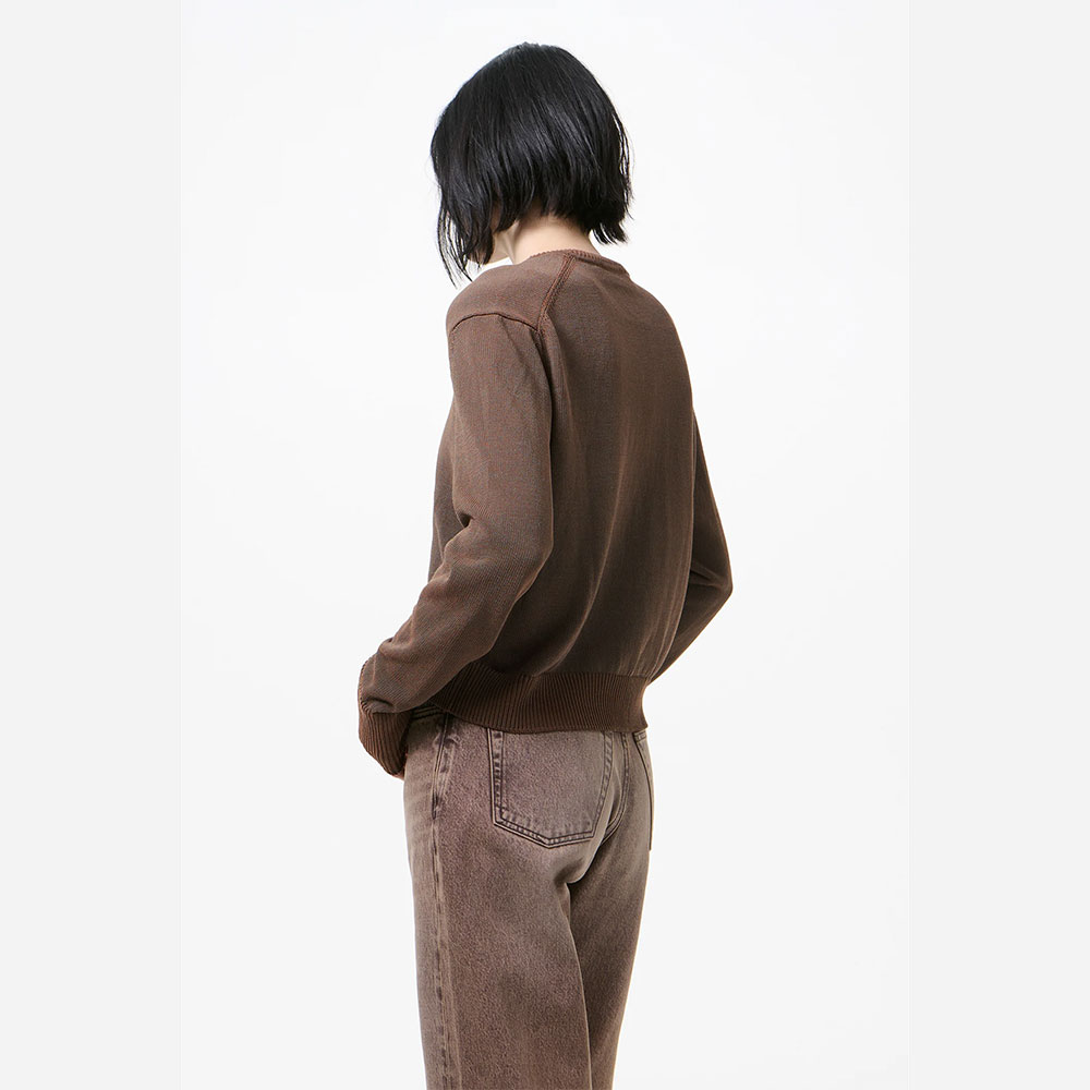 *本製品は厳選された糸を用いて編み立てられています。糸本来の特性と編み構造により、着用することで自然に伸び、身体のラインに馴染んでいきます。時間の経過とともに風合いが深まり、着る人によって完成されていく一着です。