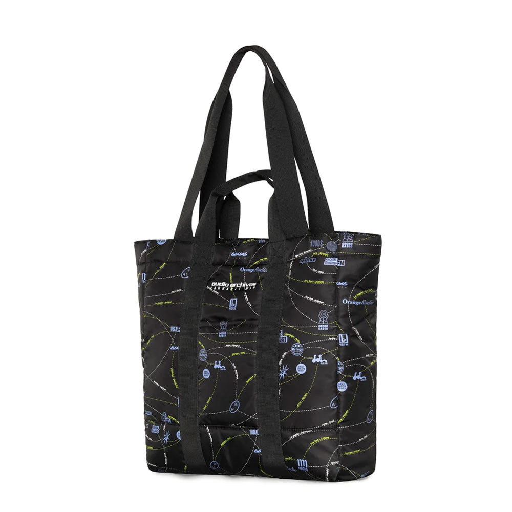 Audio Archives WIP レコードバッグは、裏地付きの中厚ナイロンキャンバスを使用。全面にAudio Archivesのプリントを施しています。