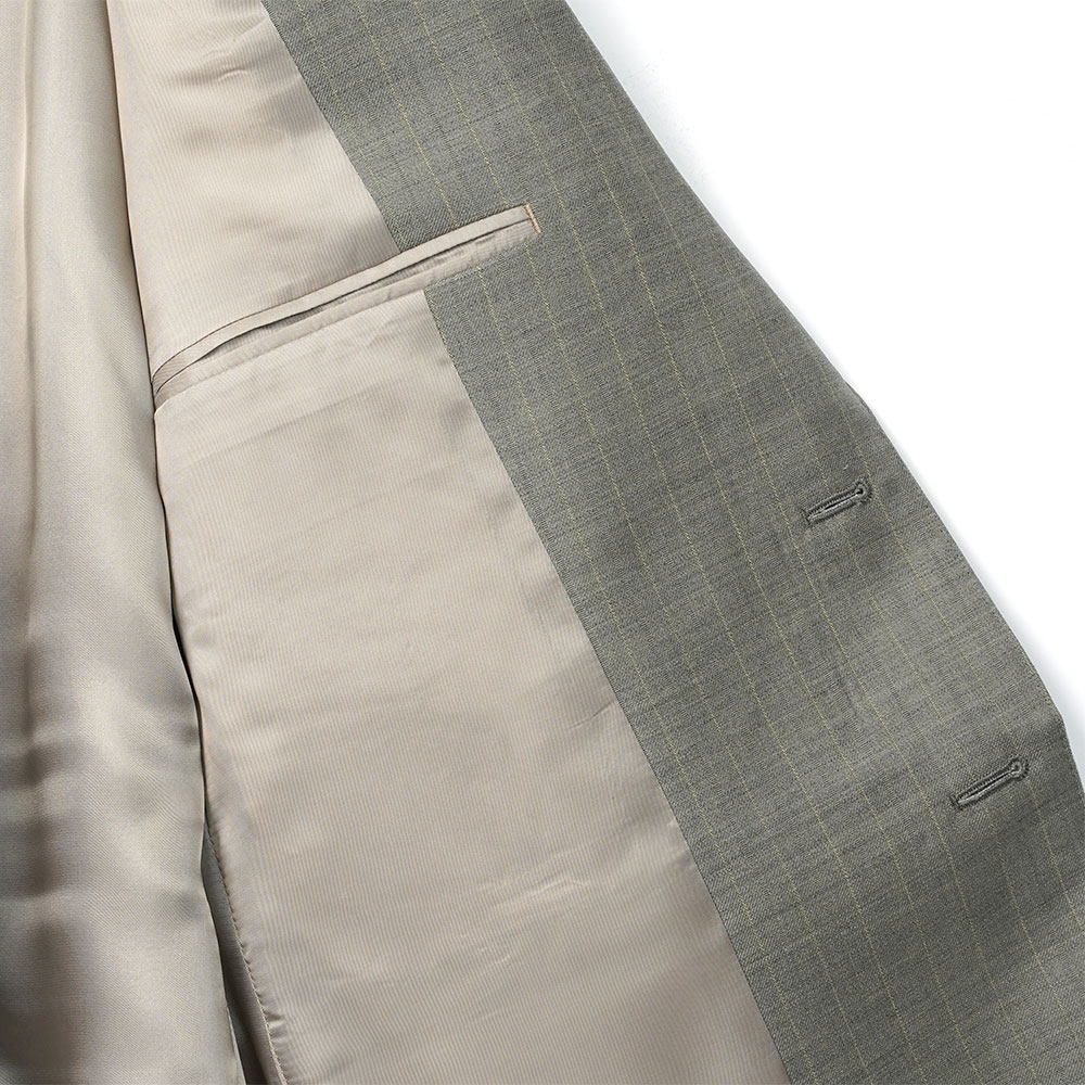 経糸にはスーパー130’sのスーパーエキストラファインメリノを、緯糸には英国羊毛ブルーフェイスラスター種の梳毛糸を使用した贅沢な素材です。ブルーフェイス特有のふくらみと程よい反発性にスーパーエキストラファインメリノの極上の滑らかさを組み合わせることで、豊かな質感と肌触りを実現しています。高級感あふれるなめらかさと弾力性を兼ね備えた奥行きのある風合いが魅力です。