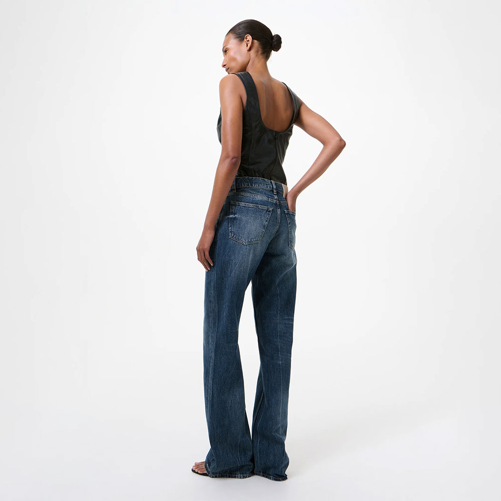 インディゴ染めを施したトルコ製ブロークンツイルデニムを使用し、ヴィンテージウォッシュ加工によって味わい深い表情に仕上げられています。シルエットはやや長めのレッグラインに、緩やかなブーツカットを組み合わせたバランスの良いデザイン。ジップフライ、スチールリベット、5ポケット仕様、OUR LEGACYのエンボスパッチなど、クラシックなデニムディテールを備えています。ブロークンツイルデニムは、通常のツイル織りに見られる斜めのラインを途中で切り替えることで、不規則なジグザグ状の織り柄を生み出した特別な織り構造が特徴です。この独特の織りによって生地の表情に奥行きが生まれるだけでなく、一般的なデニムに見られるねじれを軽減する効果もあります。