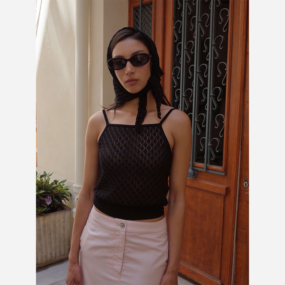 ダイヤ柄の透かし模様がレトロな雰囲気のニットキャミソール。
