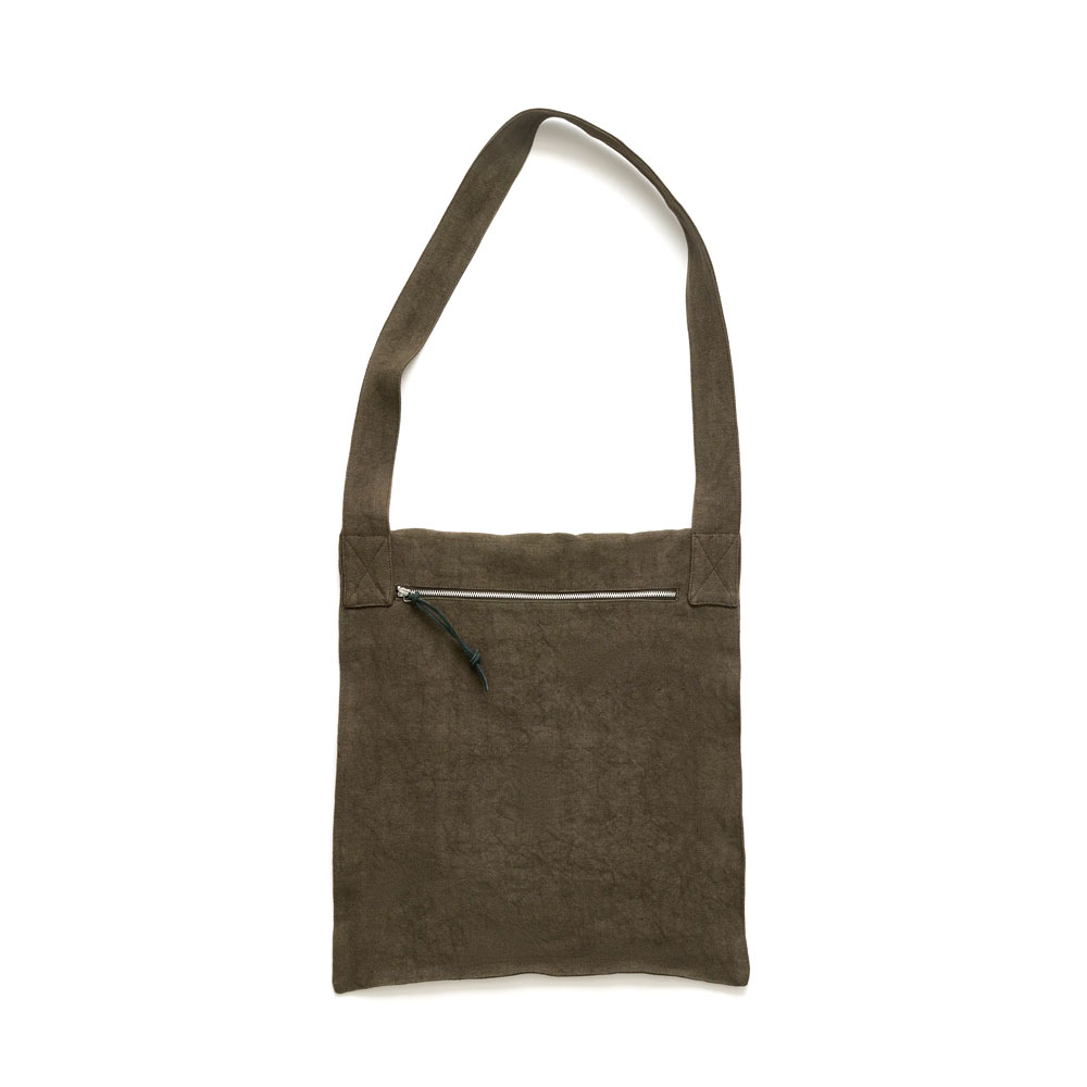 日本製リネン生地を使用したオーバーサイズのフラットクロスボディバッグ。