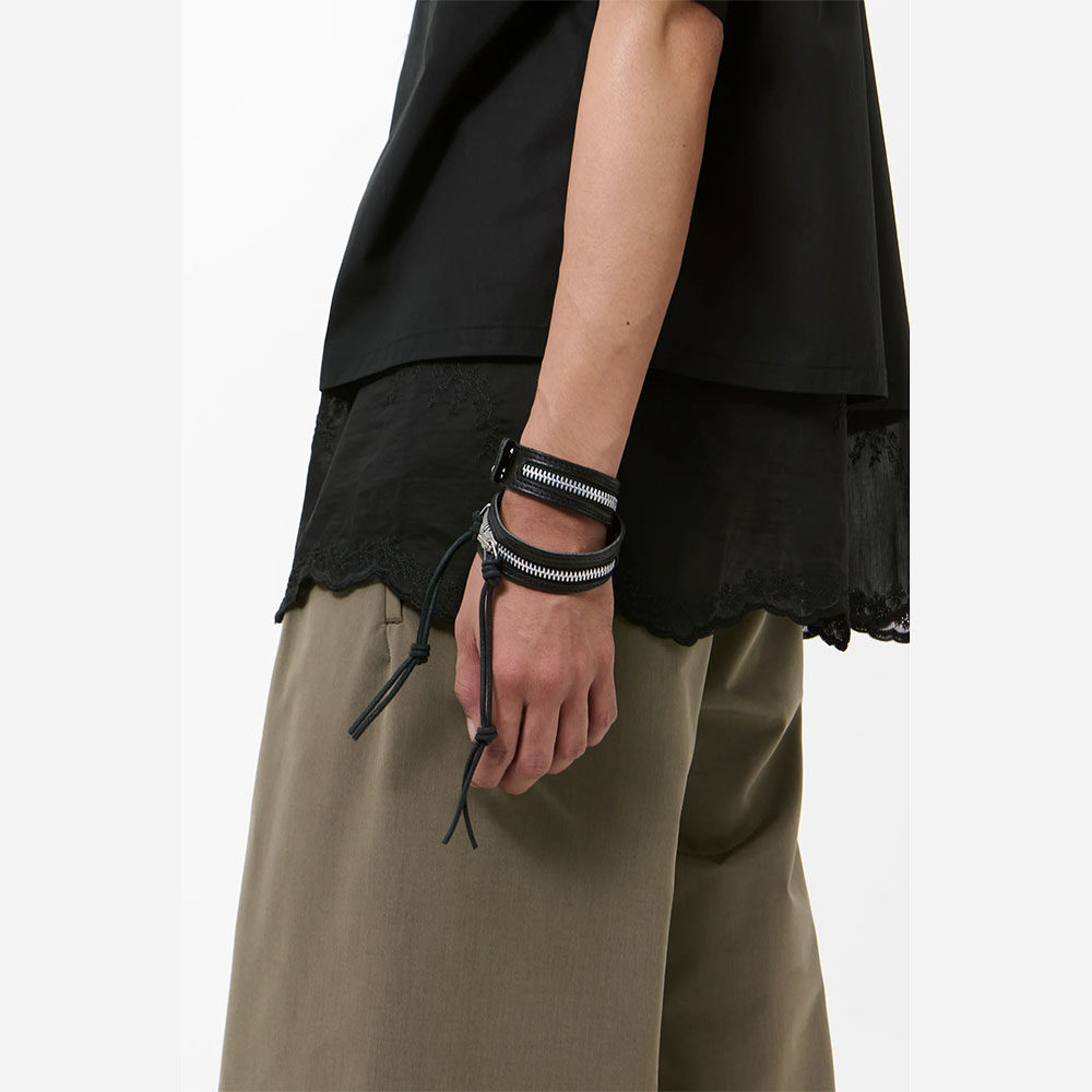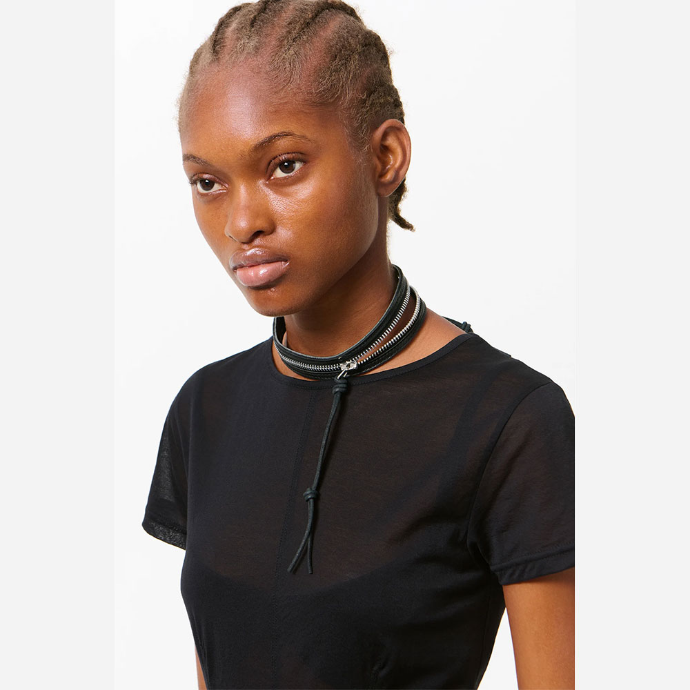 柔軟なブラックカウレザーを使用したジップ付きチョーカー。
