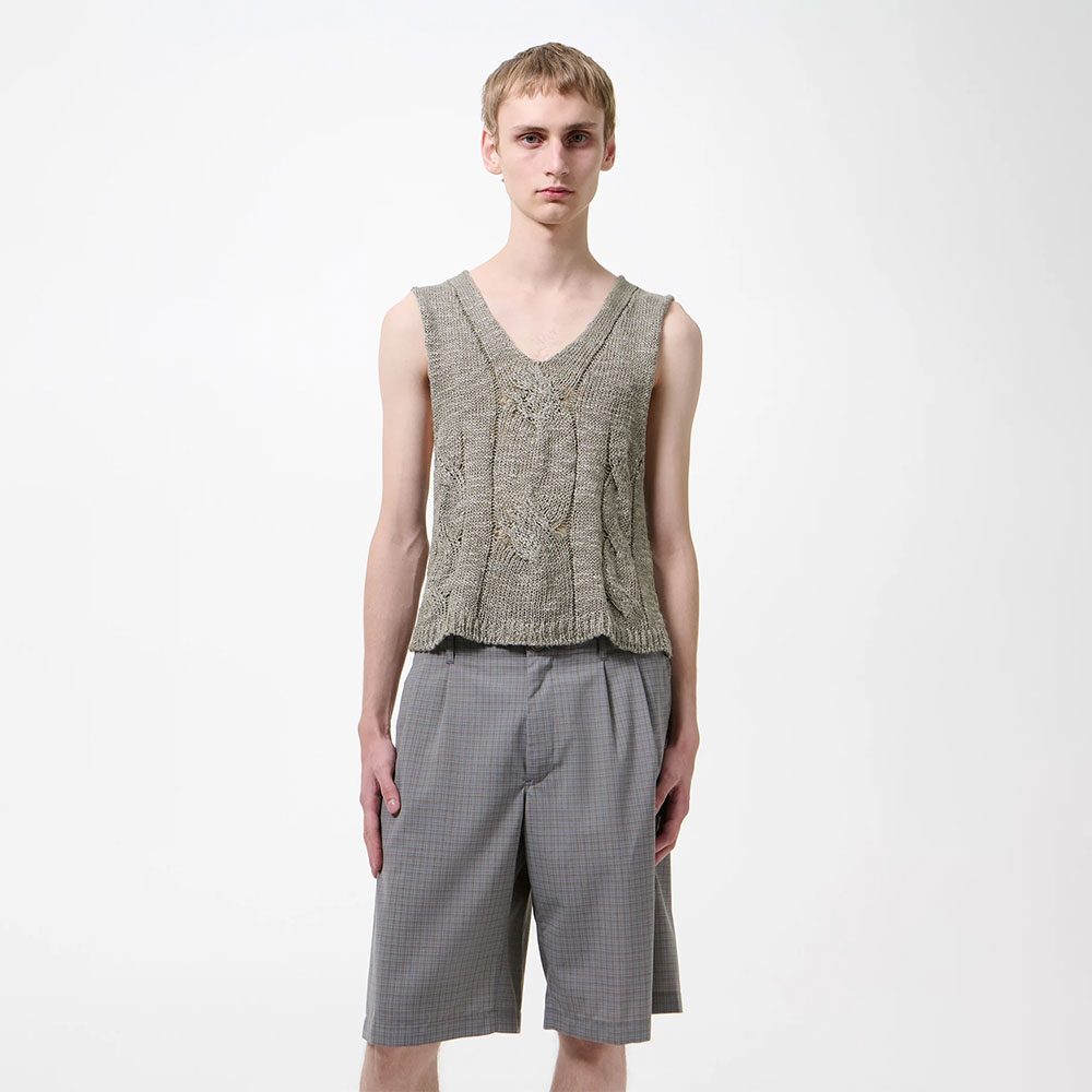上質なヘンプ×シルク糸を使用し、奥行きのある表情に仕上げたニットベスト。