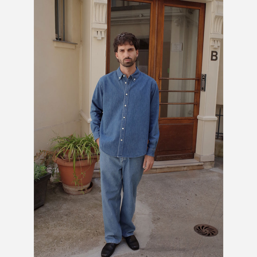 風合いのあるウォッシュドデニムを使用したボタンダウンシャツ。程よくゆとりのあるシルエットで、1枚での着用はもちろん、羽織りとしても活躍します。