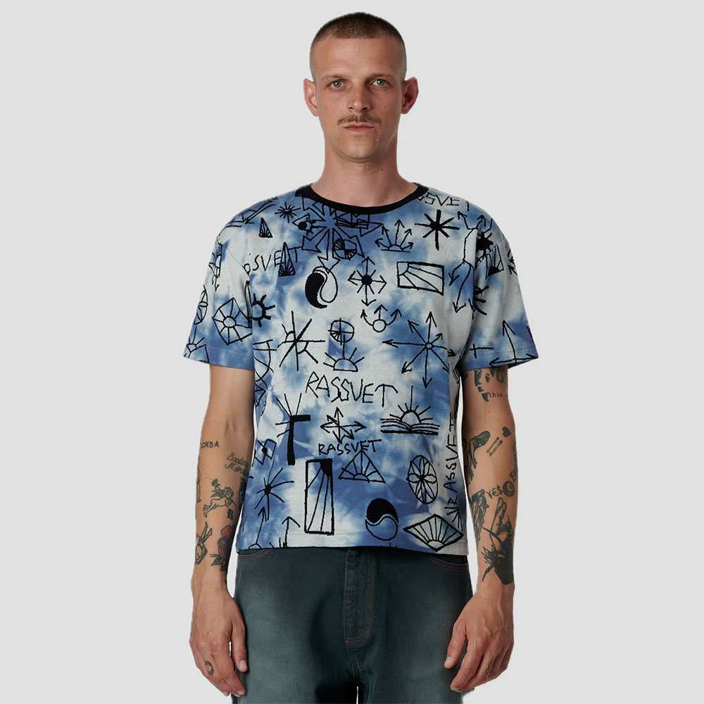 RASSVET/ラスベートよりSCRIBBLE JACQUARD TIE DYE TEE SHIRT BLUE になります。