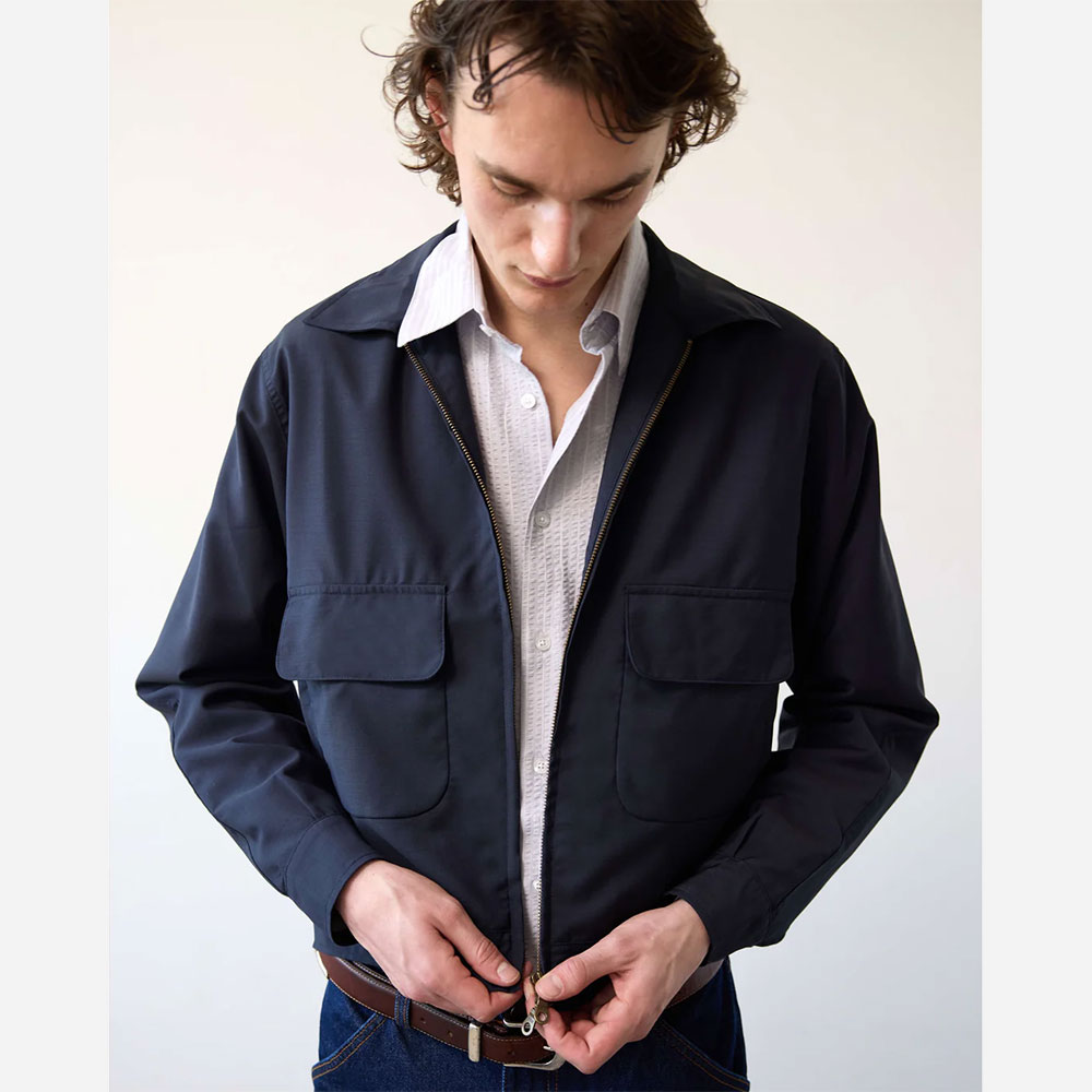 ウエストより少し上の丈感で、ヴィンテージ感のあるボクシーフィットが特徴です。ツーウェイジッパーと袖口のパネルディテールによって、機能性とスタイルの両方を高めています。