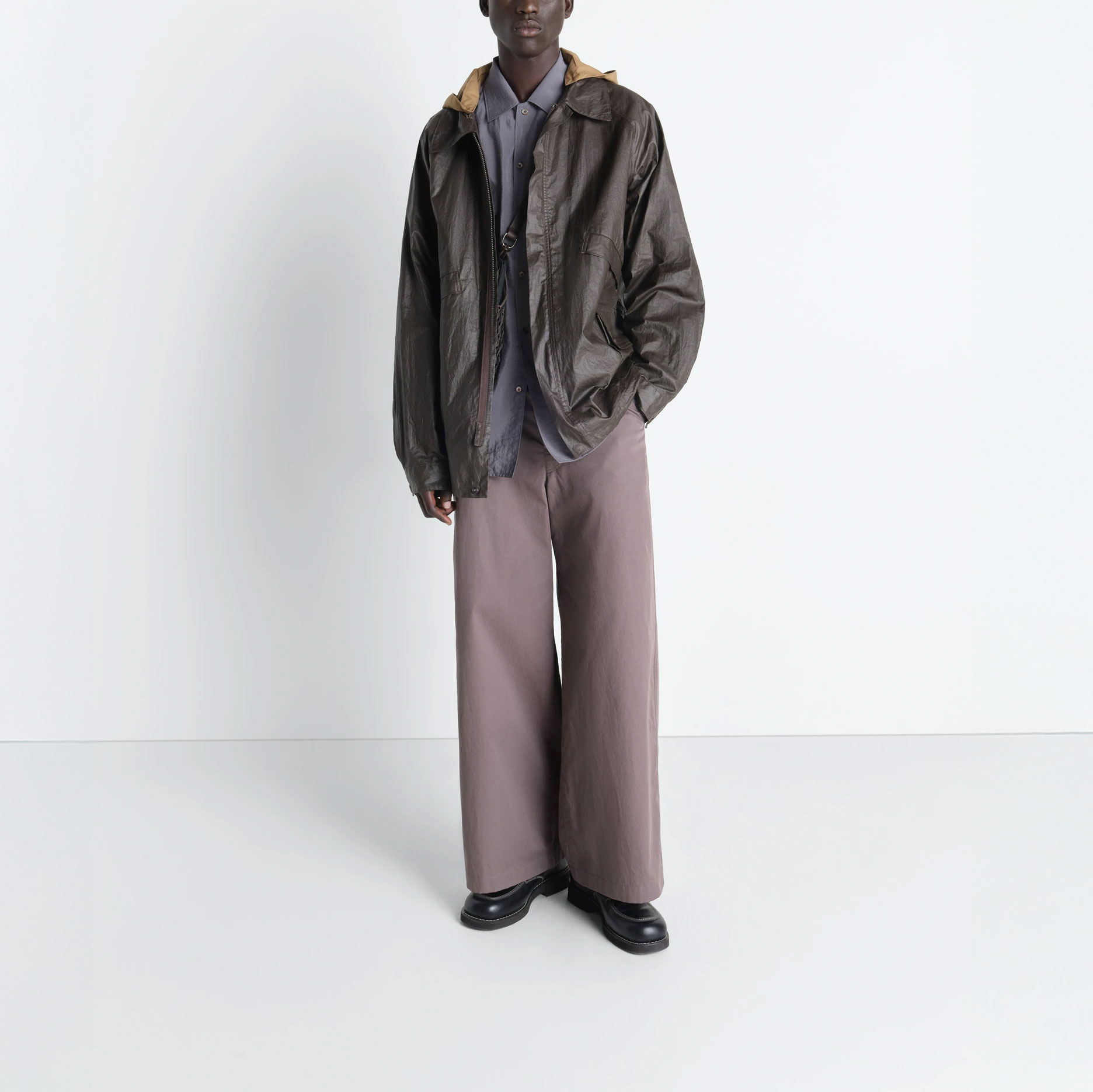 ブランドを象徴する軽やかなコットンツイルを使用し、すっきりとしたストレートシルエットに仕上げています。