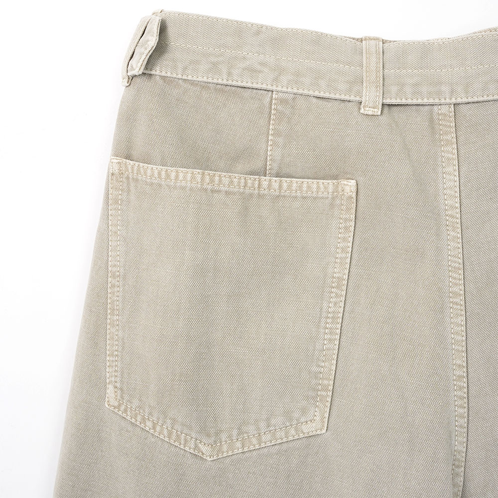 ゆったりとしたシルエットが特徴のワイドカットのバミューダショートパンツ。厚手のブロークンツイルにスノー加工を施し、霜が降りたような風合いに仕上げています。ブランドらしくモダンで洗練された印象の1本。